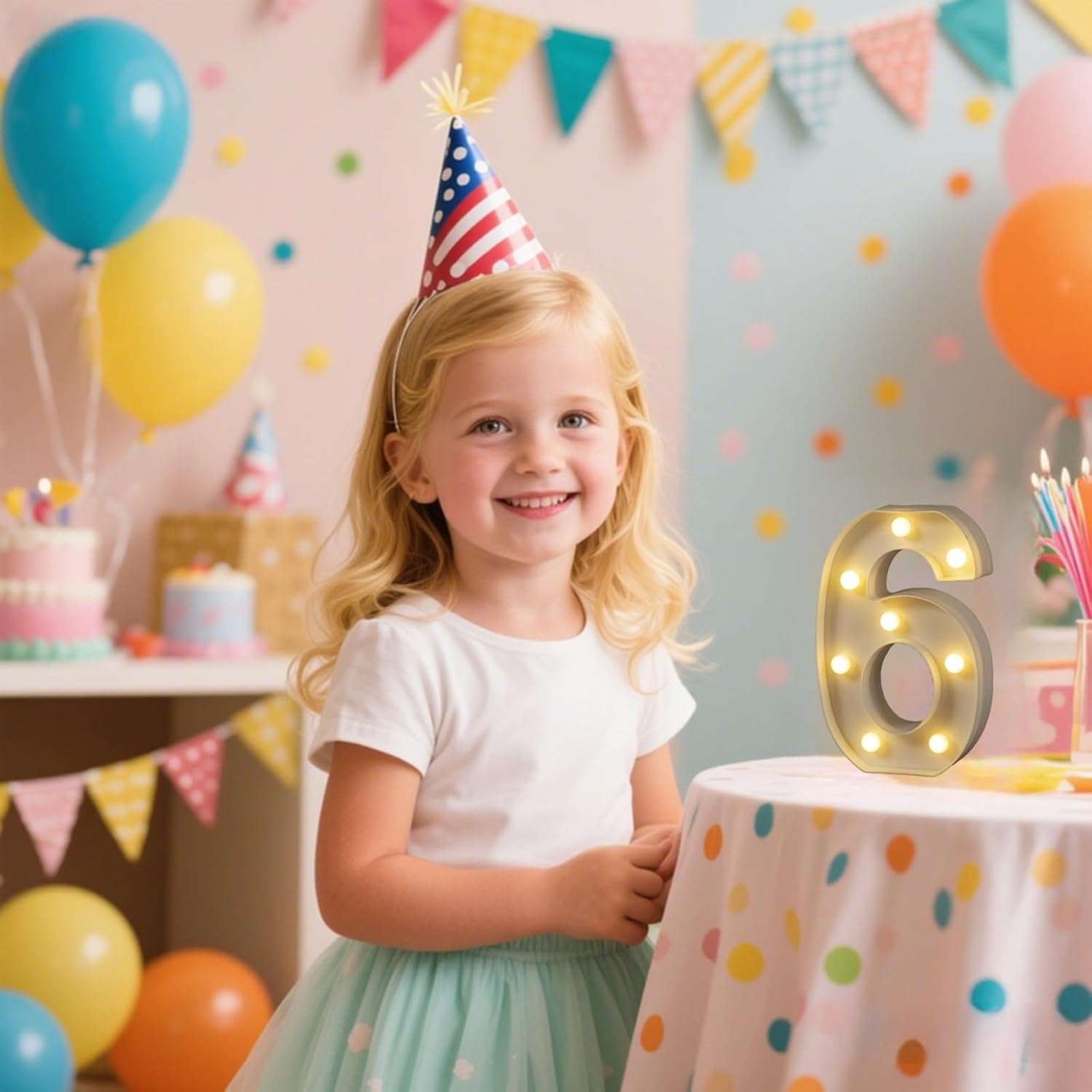 Foaky Decorative Led Marquee Light Up Number, Marquee Light Up Number Sign for Night Light Wedding Birthday Party Christmas Home Bar Decoration Number(6)