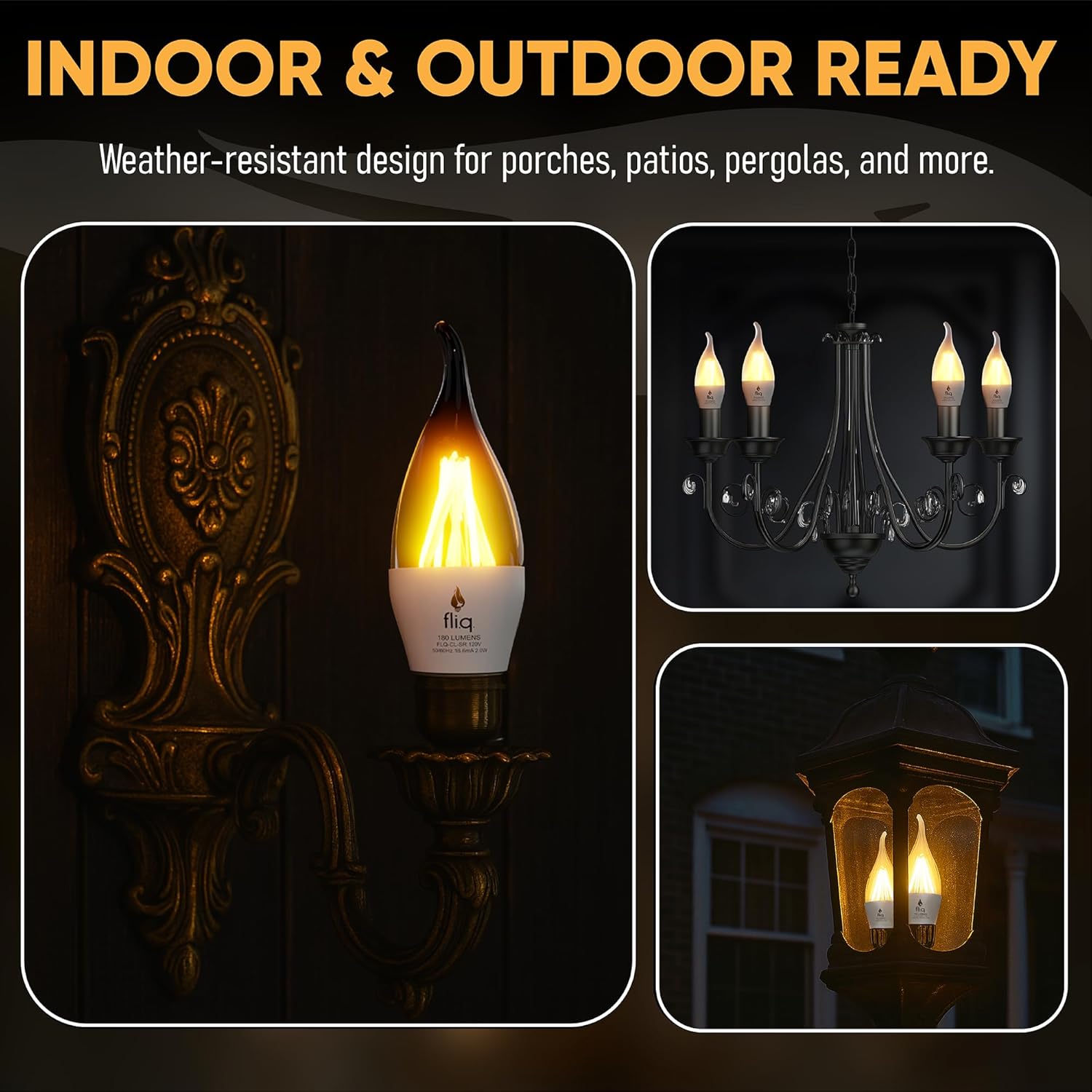 - 4 VERSITLE LIGHTING MODES - Experience both Static and Flickering flame effects, each with Bright and Dim settings, allowing you to create the perfect ambiance for any occasion from romantic dinners to cozy reading nights. Intuitively switch between modes (Static/Flicker and Bright/Dim) using your existing light switch - no special equipment or complicated setup required, perfect for both indoor and outdoor lighting fixtures.