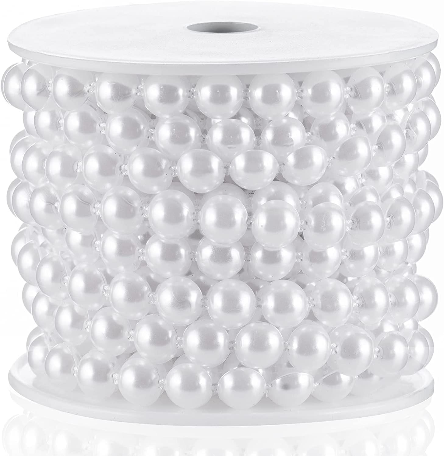 Flat Pearl Garland String 11 Yards, 10MM Half-Round Beaded Spool Roll Crafts for Wedding Decoration (White)