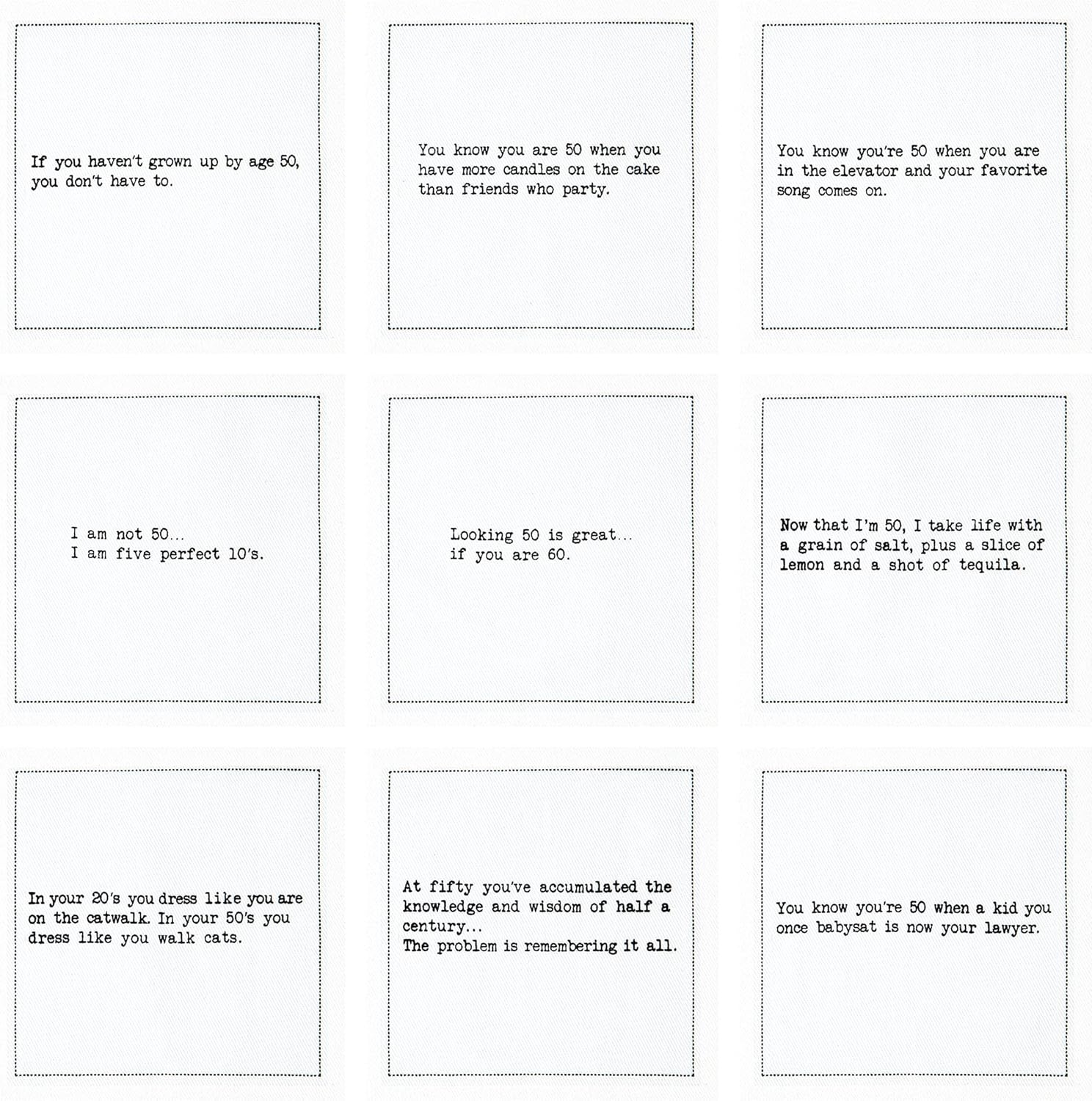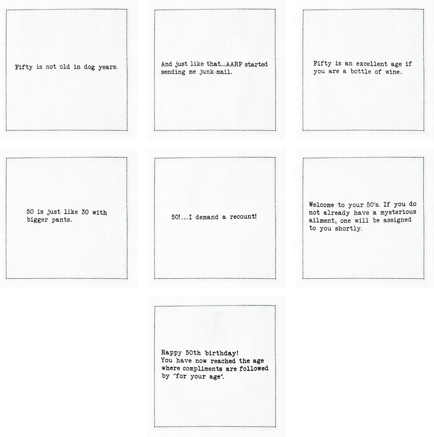 Five Star Napkins 50th Birthday Quotes White Cotton Cocktail Napkins, Beverage Napkins, Bar Napkins, Cloth Napkins, Party Napkins, Events, Holidays, Weddings, Birthdays, Disposable, 4.5" x 4.5"- (50x)