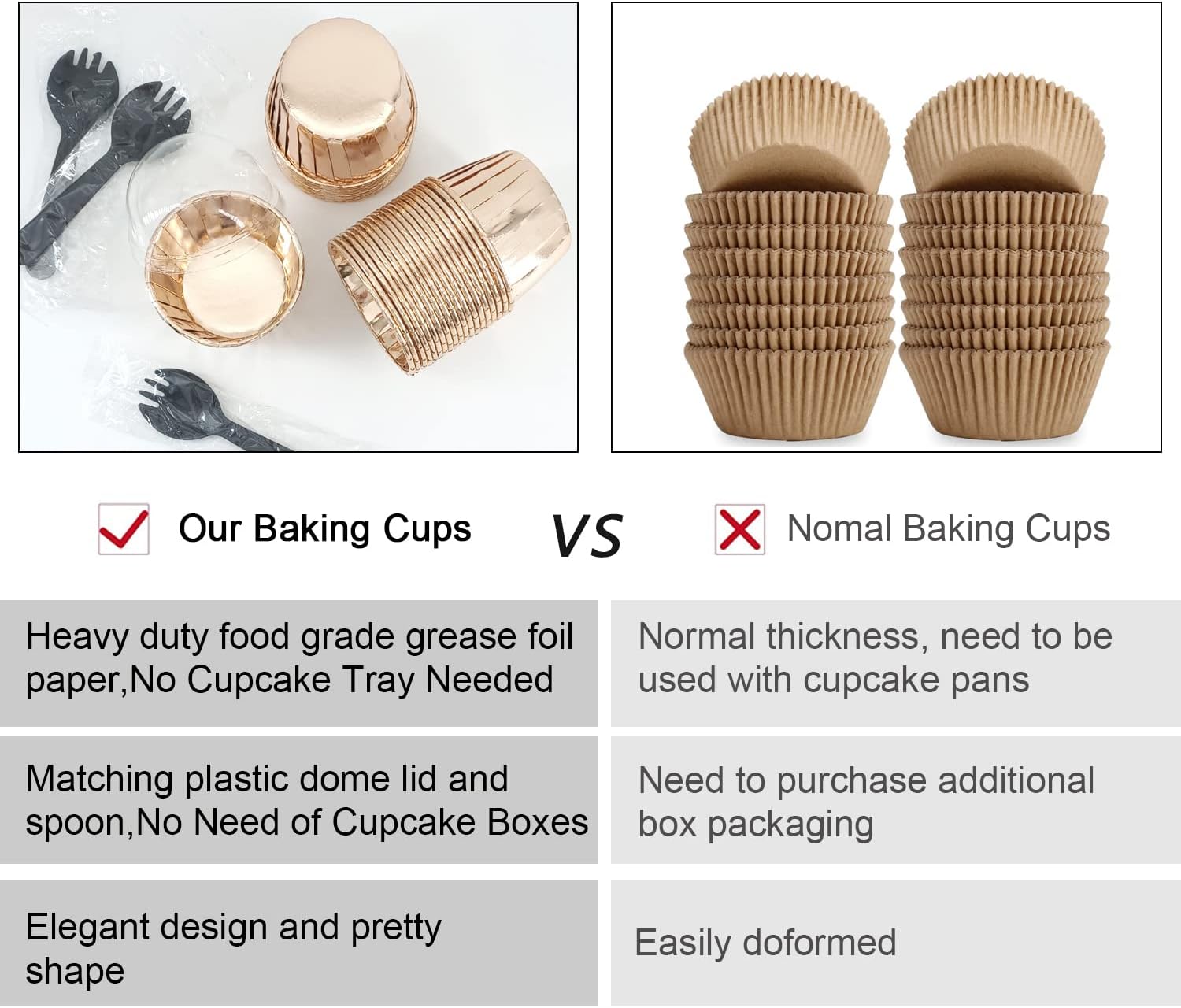- 【No Cupcake Baking Tray Needed】-These mini cupcake liners are made with food-grade foil paper,which enable them directly without baking tray required.The cupcake baking liners are nonstick and oven safe, and can withstand temperatures up to 220℃/420℉. (NOTE:The clear lids are not heat resistant!)