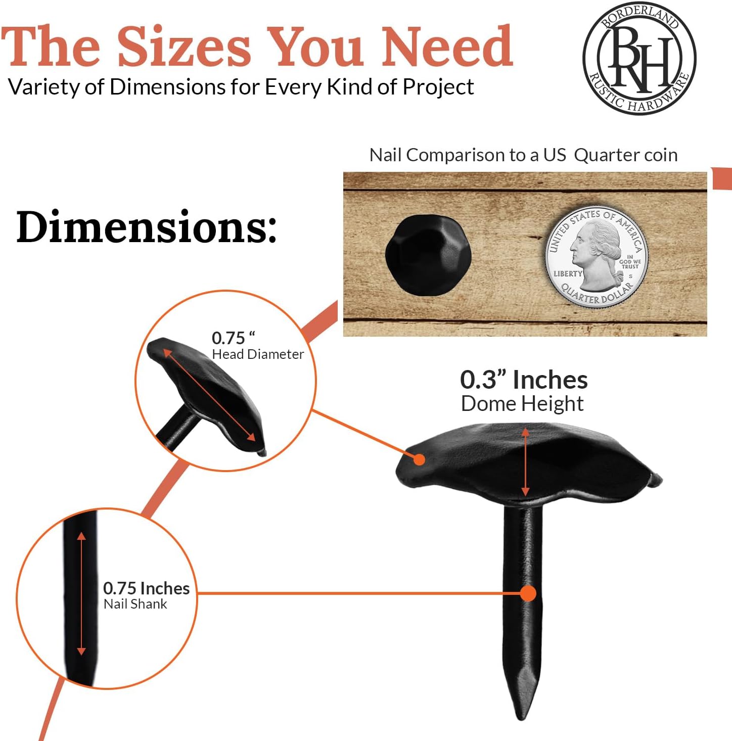10 Pack 0.75" Round Head Iron Clavos Decorative Nails – Black – Handmade Rustic Round Fasteners for Farmhouse Shutters, Faux Wood Beams, Barn Doors, Shutters, Gates – Ornamental Wood Accent