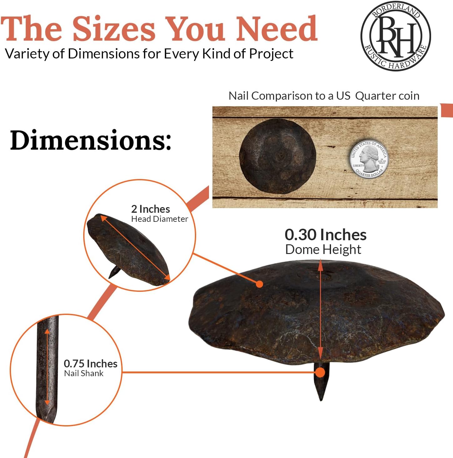 10 Pack 2" Round Head Iron Clavos Decorative Nails – Unfinished – Handmade Rustic Round Fasteners for Farmhouse Shutters, Faux Wood Beams, Barn Doors, Shutters, Gates – Ornamental Wood Accent