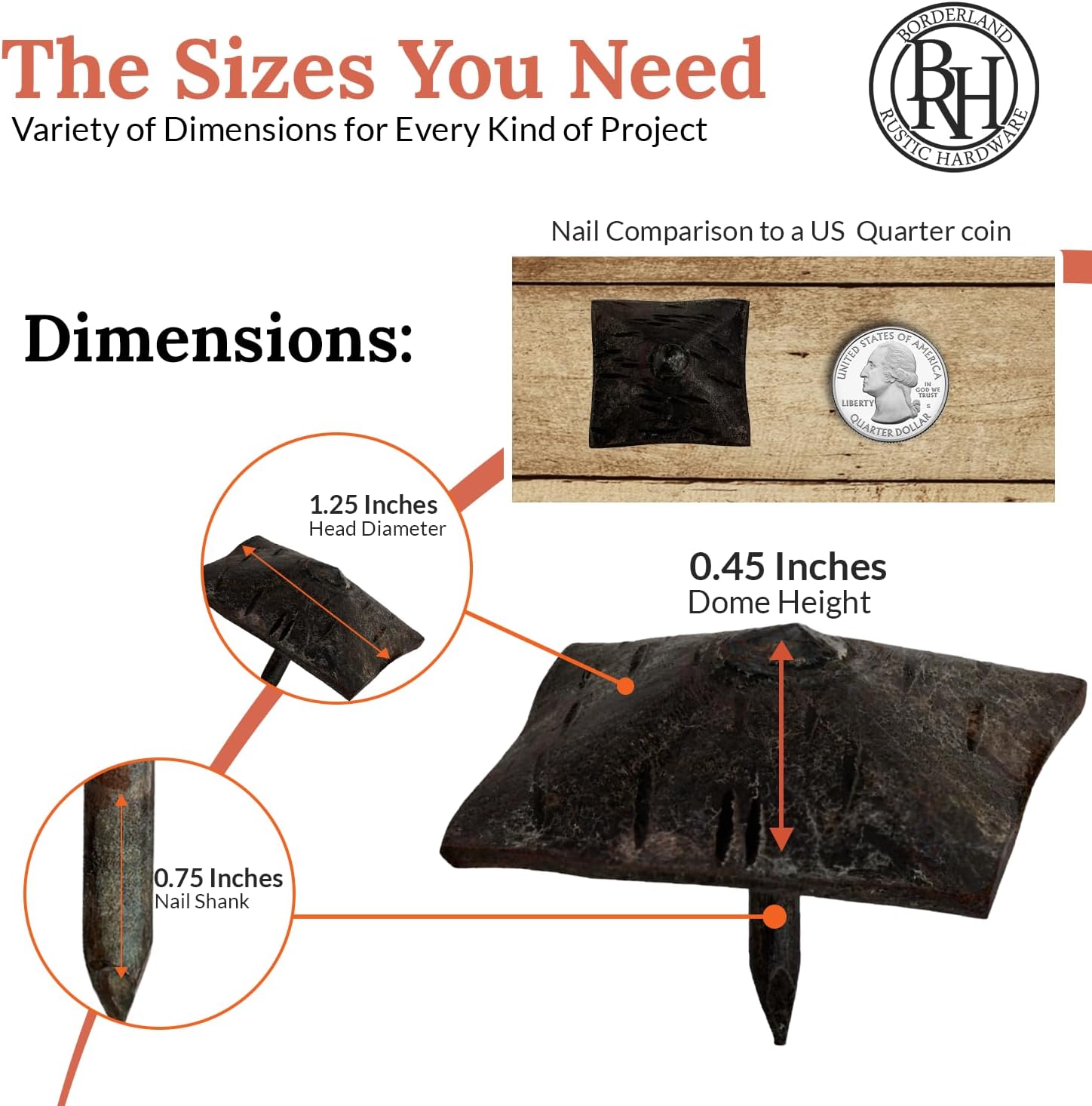 100 Pack 1.25" Square Head Iron Clavos Decorative Nails – Unfinished – Handmade Rustic Square Fasteners for Farmhouse Shutters, Faux Wood, Barn Doors, Shutters, and Gates – Ornamental Wood Accent