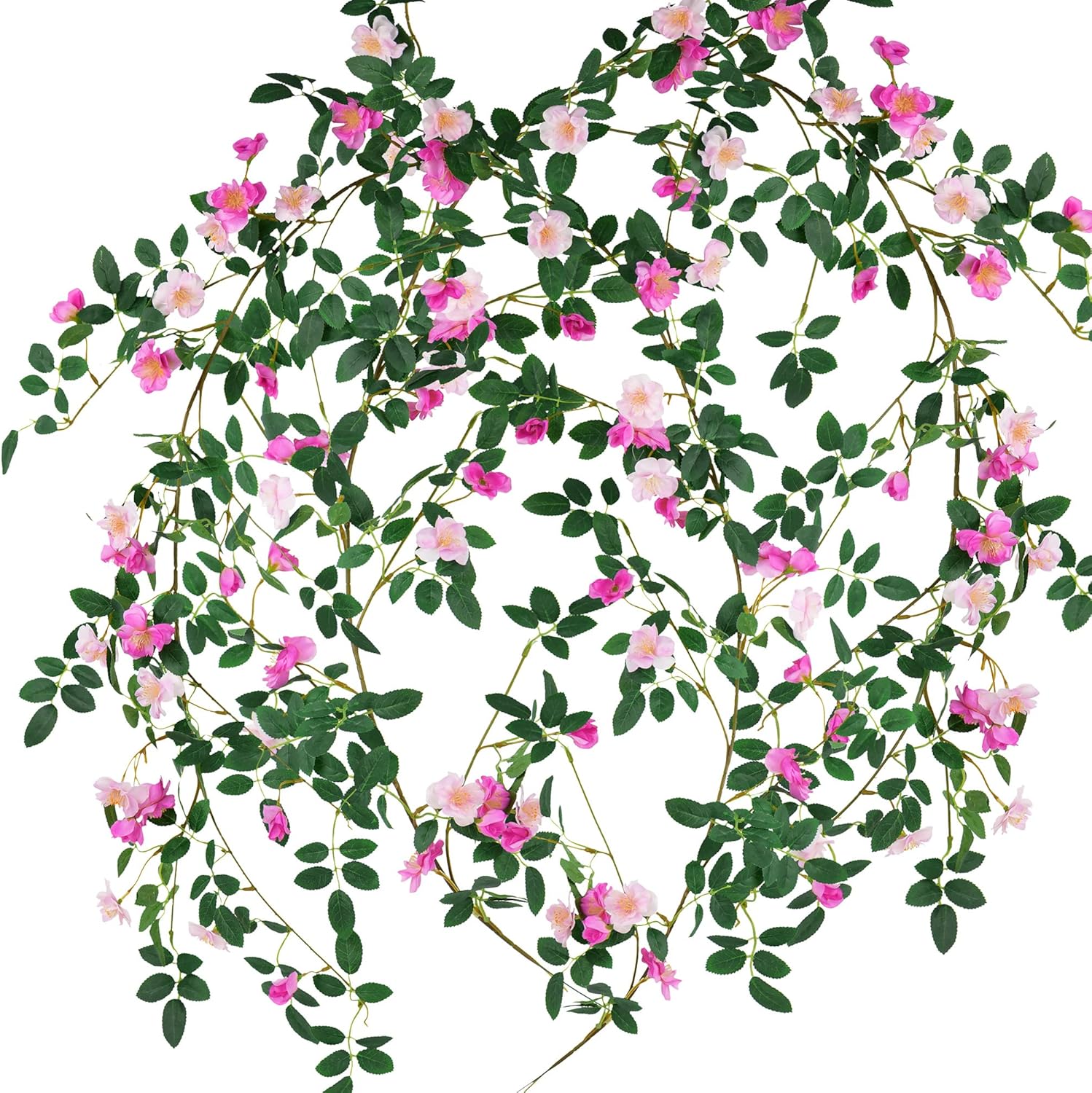FiveSeasonStuff Fuchsia Pink Flower Garlands, Artificial Silk Wild Roses Bendable Vine Leaves Hanging Flowers for Wall Decoration Basket Trellis Wedding Home 2 Pack 12 ft