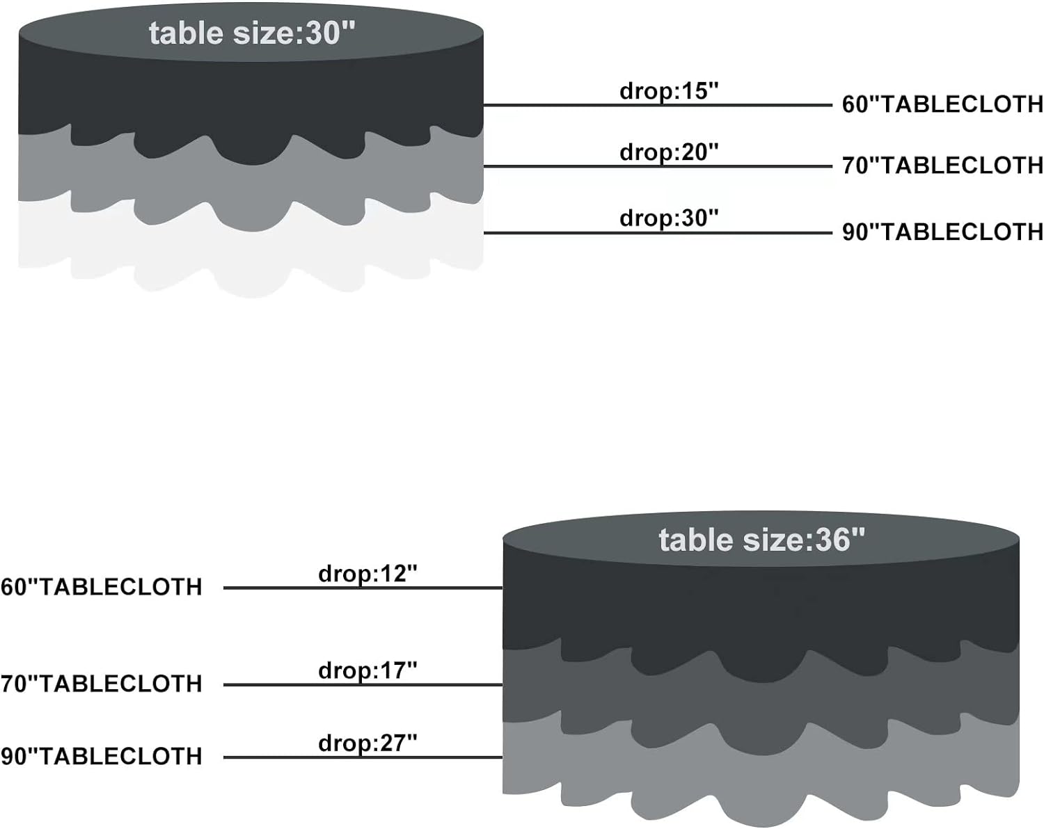 - Measurement: Available in following sizes: Rectangular: 60"*102", 60"*120", 90"*132", 90"*156". Square: 52ββ*52ββ, 70ββ*70ββ, 90ββ*90ββ. Round: 70ββ, 90ββ, 108ββ, 120ββ, 132ββ. Please measure the size of your table before purchasing. Each pack include 2 pcs of tablecloth.