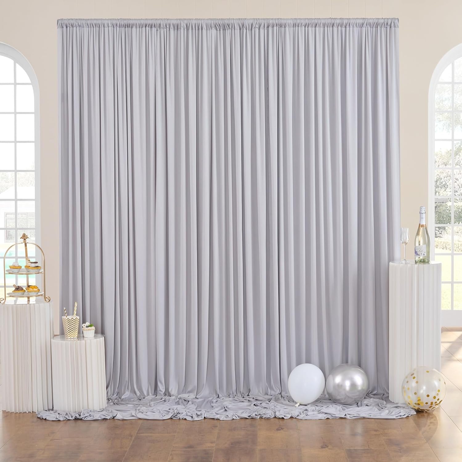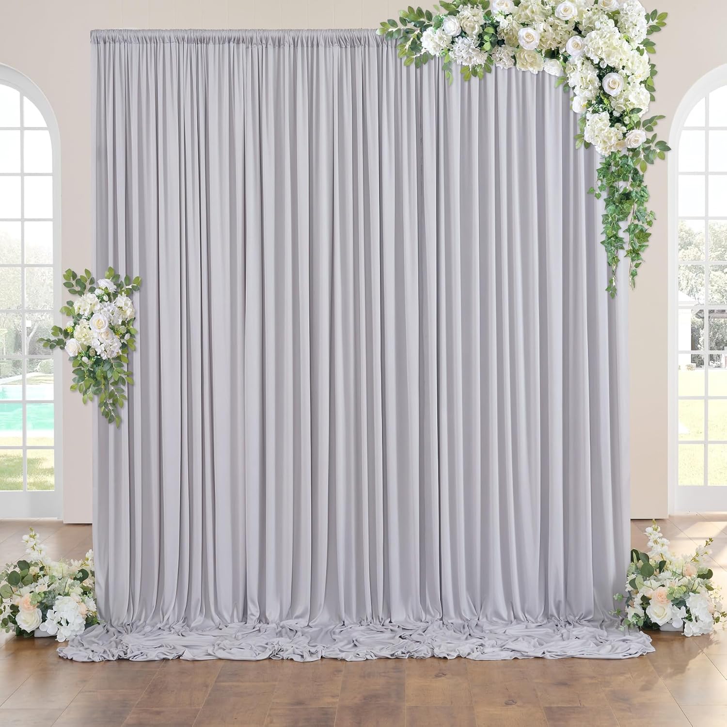 10 ft x 10 ft Wrinkle Free Silver Backdrop Curtain for Parties, Polyester Silver Grey Backdrop Drapes 2 Panels 5x10ft for Baby Shower Photoshoot Engagement Wedding Birthday Photography Background