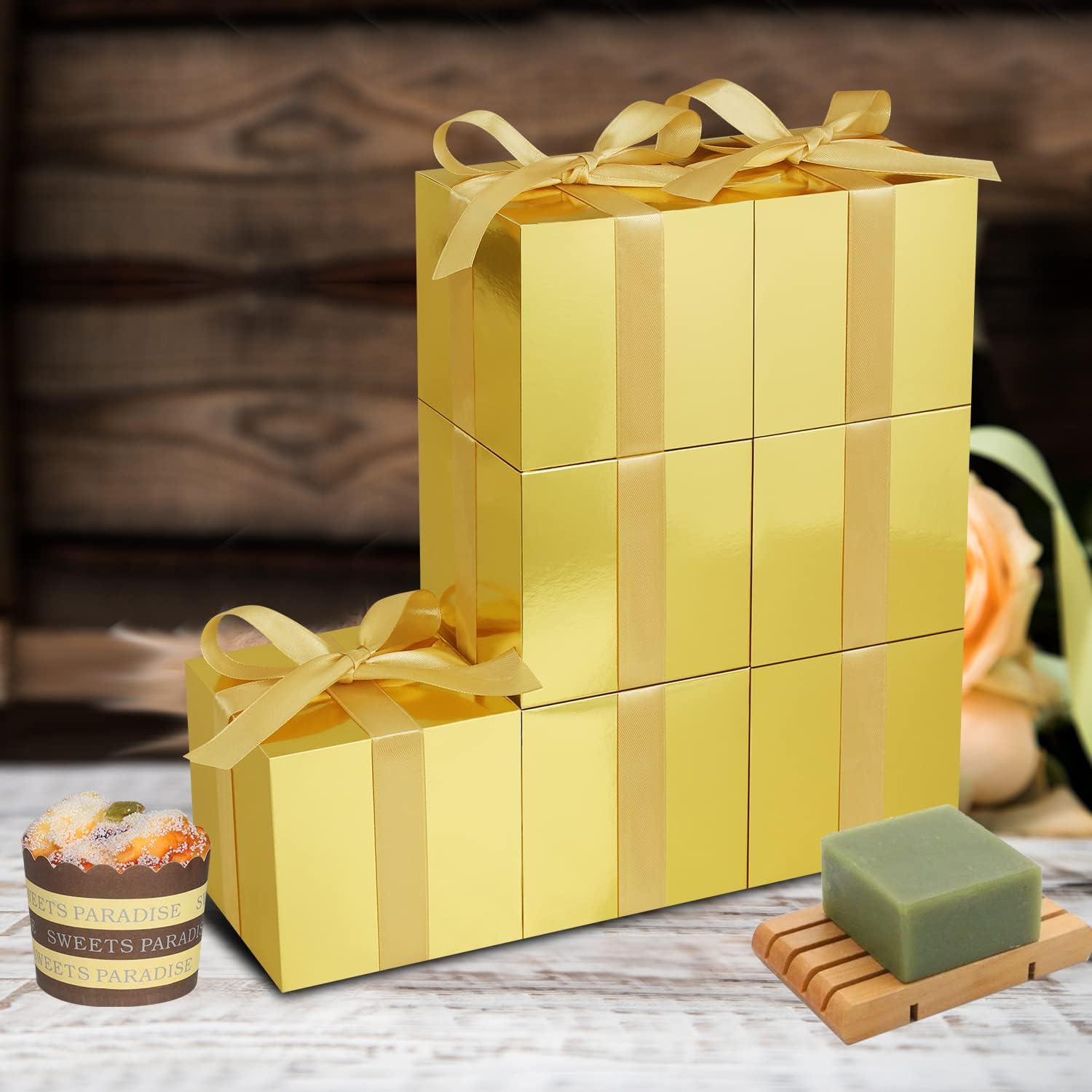 - Premium Material: Gold gift boxes are made of premium kraft paper, Its completely strong enough as a candy box or a gift box. It fills with small gift or any small object for your friends. Adding special sweet atmosphere to your unforgettable party.