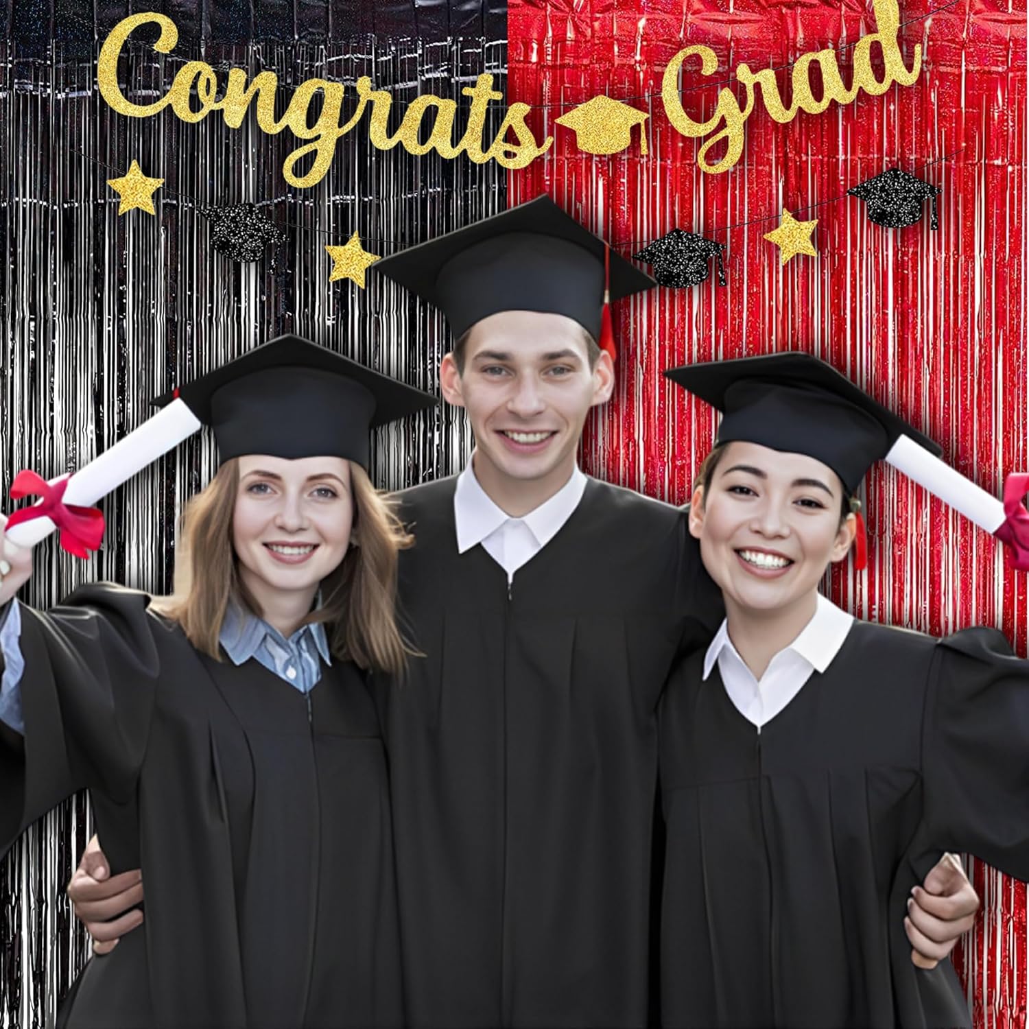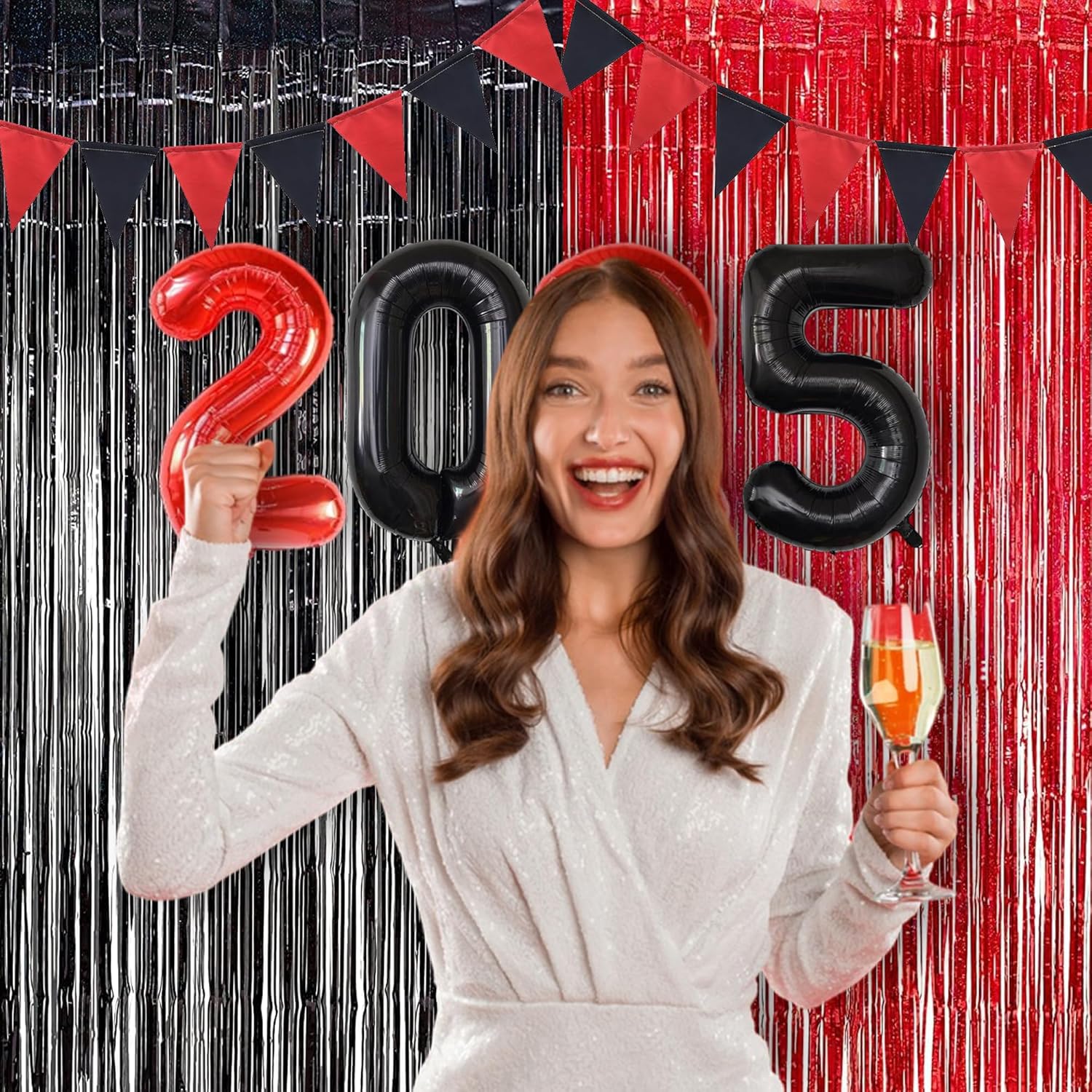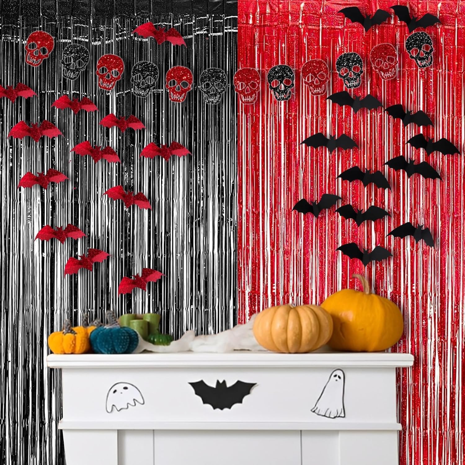 Foil Fringe Curtain Party Decorations - Black Red Metallic Tinsel Backdrop Party Steamers Curtains for Birthdays Halloweens Christmas Theme Prom Holidays Parties Decorations