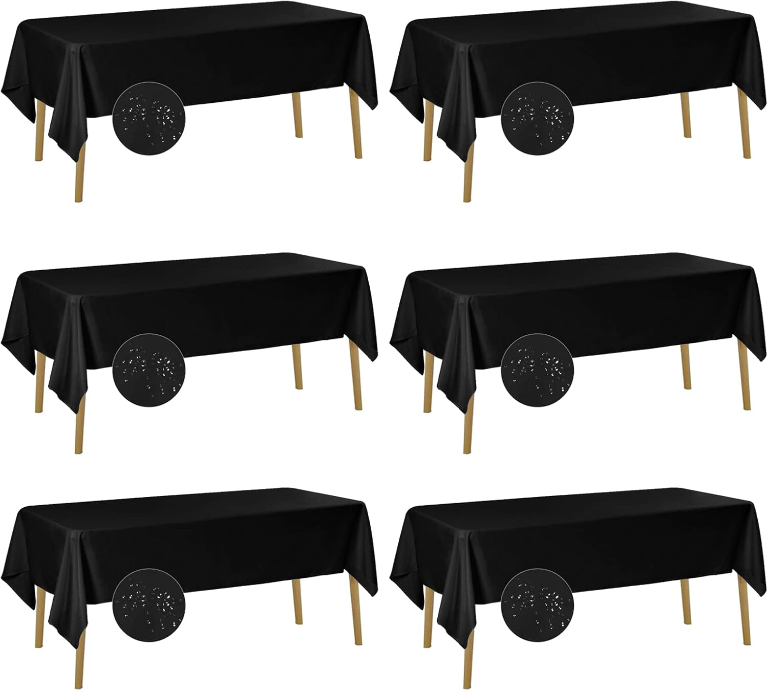 Fokitut 6 Pack Waterproof Rectangle Tablecloth, 60x102 Inch, Stain Resistant and Wrinkle Polyester Table Cloth, Fabric Table Cover for Kitchen Dining, Wedding, Party, Holiday Dinner-Black