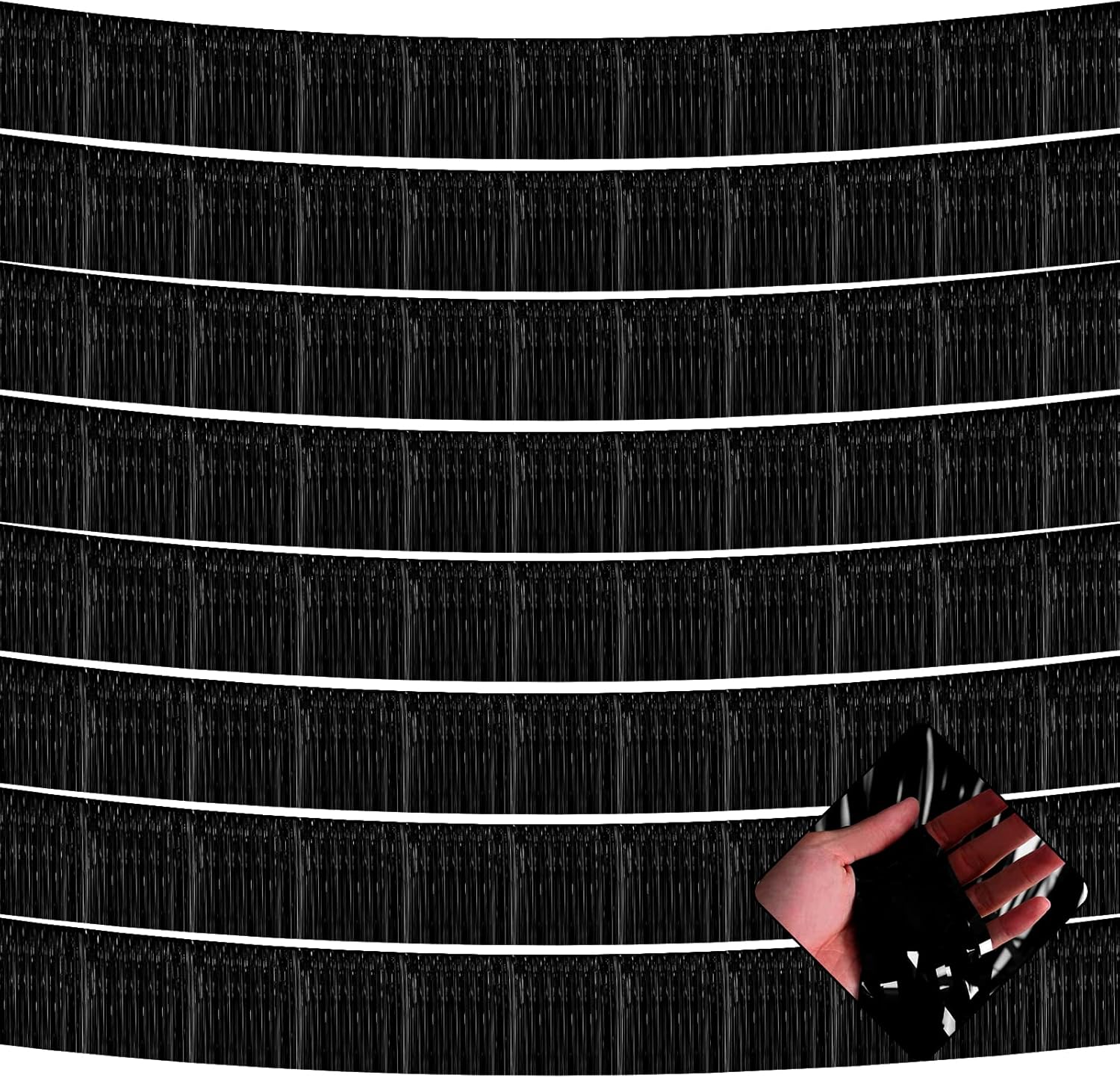10 Pack 10 Feet Foil Fringe Garland Metallic Tinsel Streamers Banner Wall Hanging Curtain Backdrop for Parade Floats, Bachelorette, Wedding, Birthday, Halloween, Christmas Party Decorations(Black)
