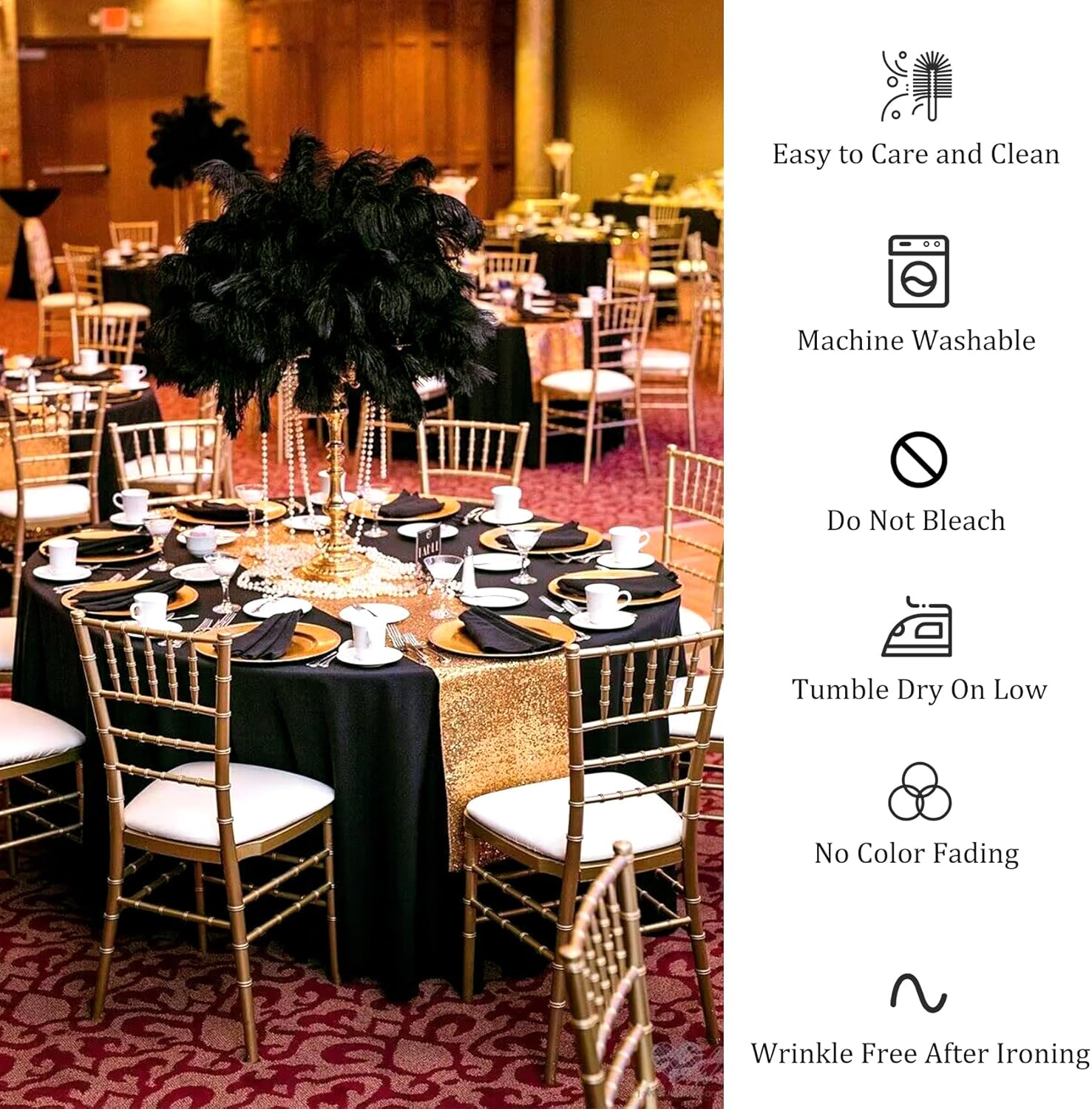 - Easy to Clean: these circle tablecloth are easy to clean, machine washable and hand washable, tumble dry on low, won't fade, won't tear easily, no bleach, wrinkle free after Ironing, easy to care than most cotton tablecloth. Simple ironing after cleaning will keep them looking new.