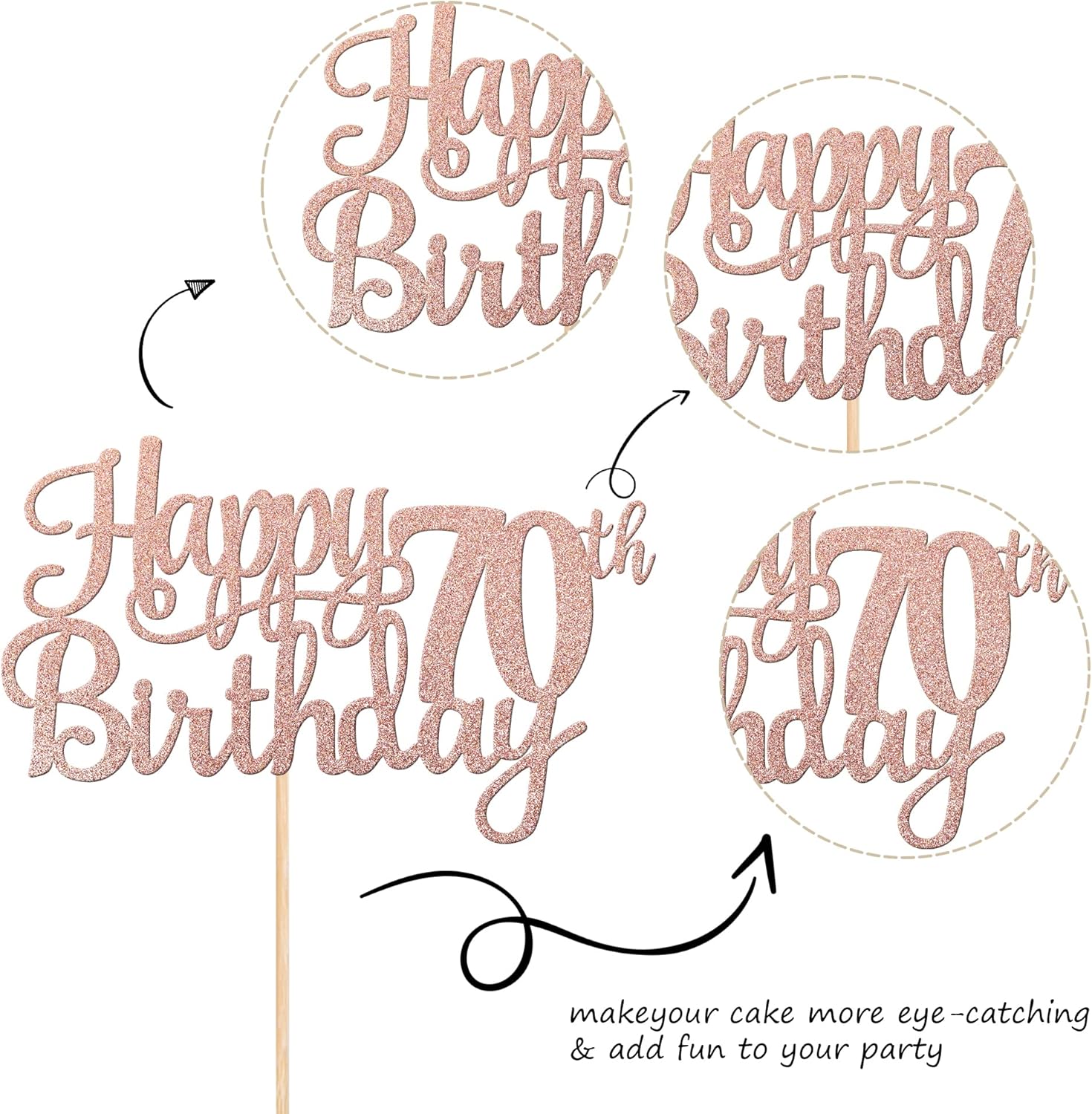 - Wide Usages ! The cake topper is perfect for happy 70th birthday theme party, cheers to 70 years birthday theme party cake decorations, they can make your cake more attractive and bring the fun to your party.You can also apply them for ice cream, fruits, cookies and other desserts.