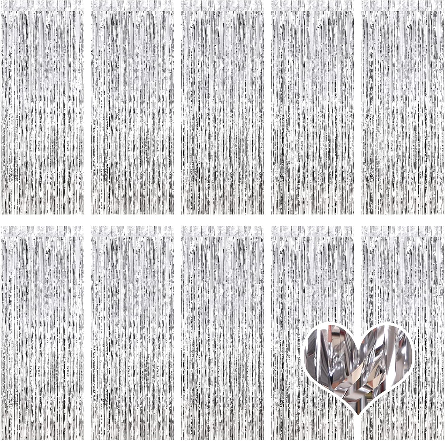 10 Pack Silver Backdrop Curtain 3.2ft x 8.2ft Metallic Tinsel Foil Fringe Curtains Photo Booth Background for Birthday Party Decoration Baby Shower Engagement Wedding Christmas Decoration (Silver)