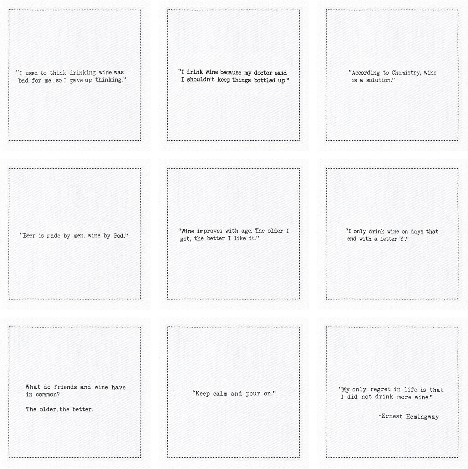 Five Star Napkins Wine Quotes, White Cotton Cocktail Napkins, Beverage Napkins, Bar Napkins, Cloth Napkins, Party Napkins, Events, Holidays, Weddings, Birthdays, Disposable, 4.5" x 4.5"- (50x)