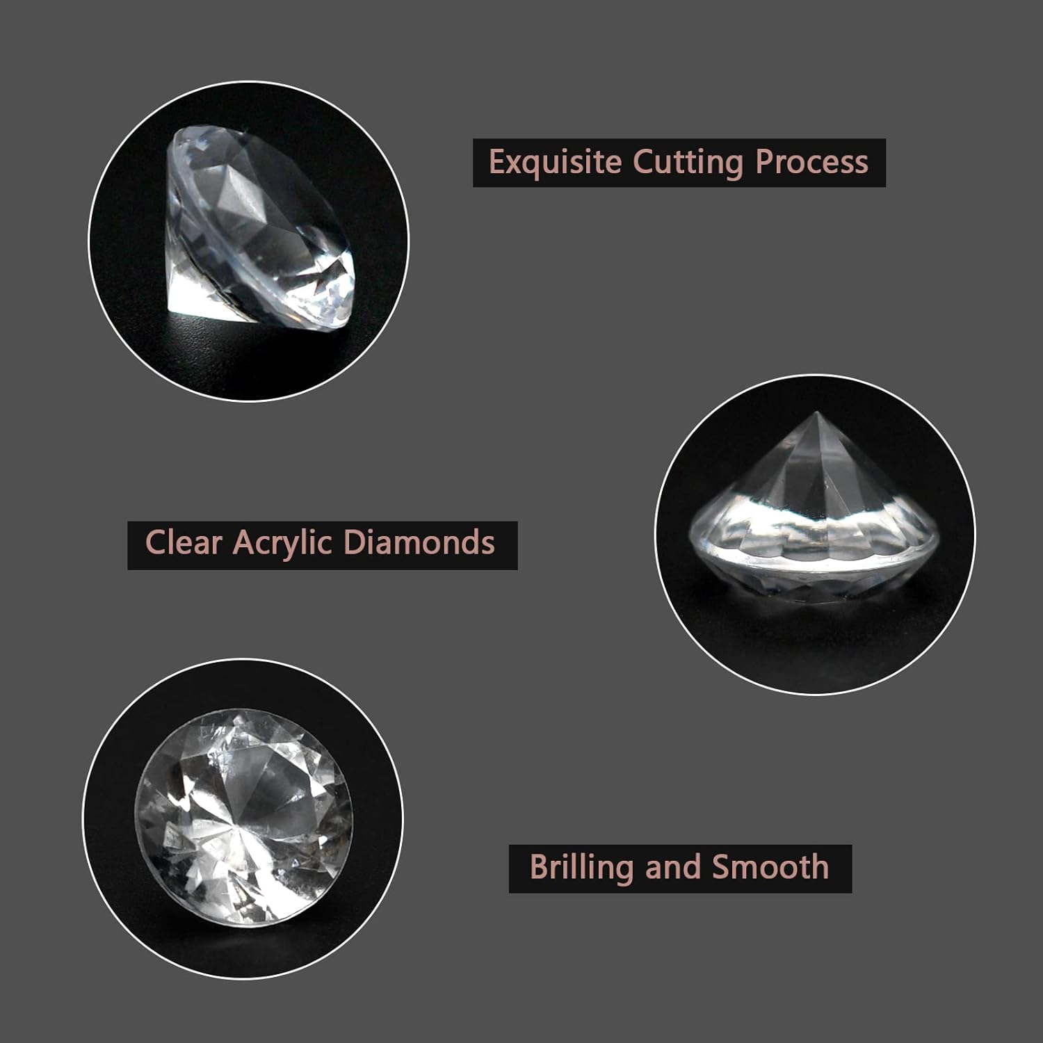 - Package contains: 1000 pcs clear acrylic diamond gems, 1.18 inch (30mm) 25pcs, 0.78 inch (20mm) 75pcs, 0.47 inch (12mm) 150pcs, 0.31 inch (8mm) 300pcs, 0.15 inch (4mm) 450pcs.