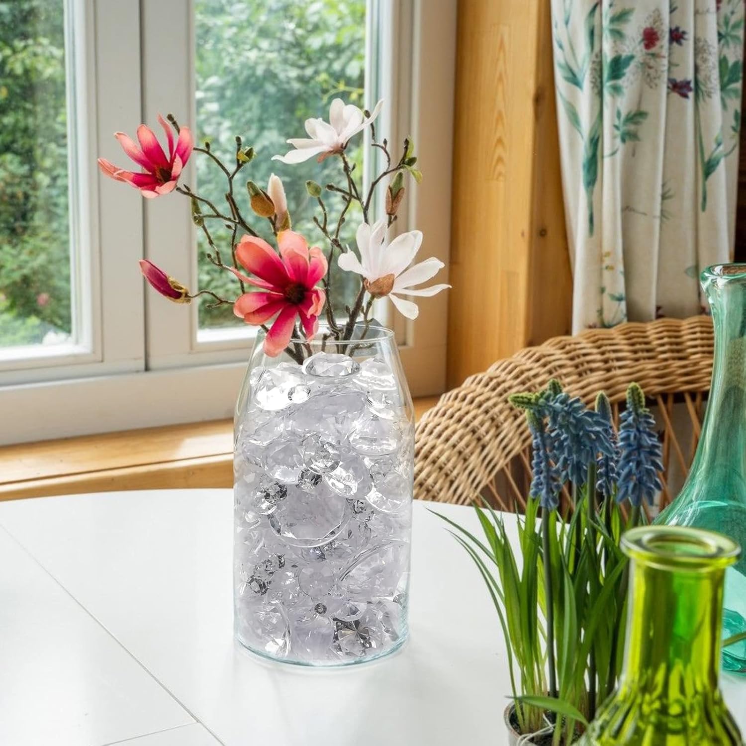 - Elegant shape: This diamond vase filler has an exquisite shape and looks like a real diamond. Faux gems refract light in all directions, the different facets of the acrylic gemstone can shine in the light, making them more beautiful and elegant.