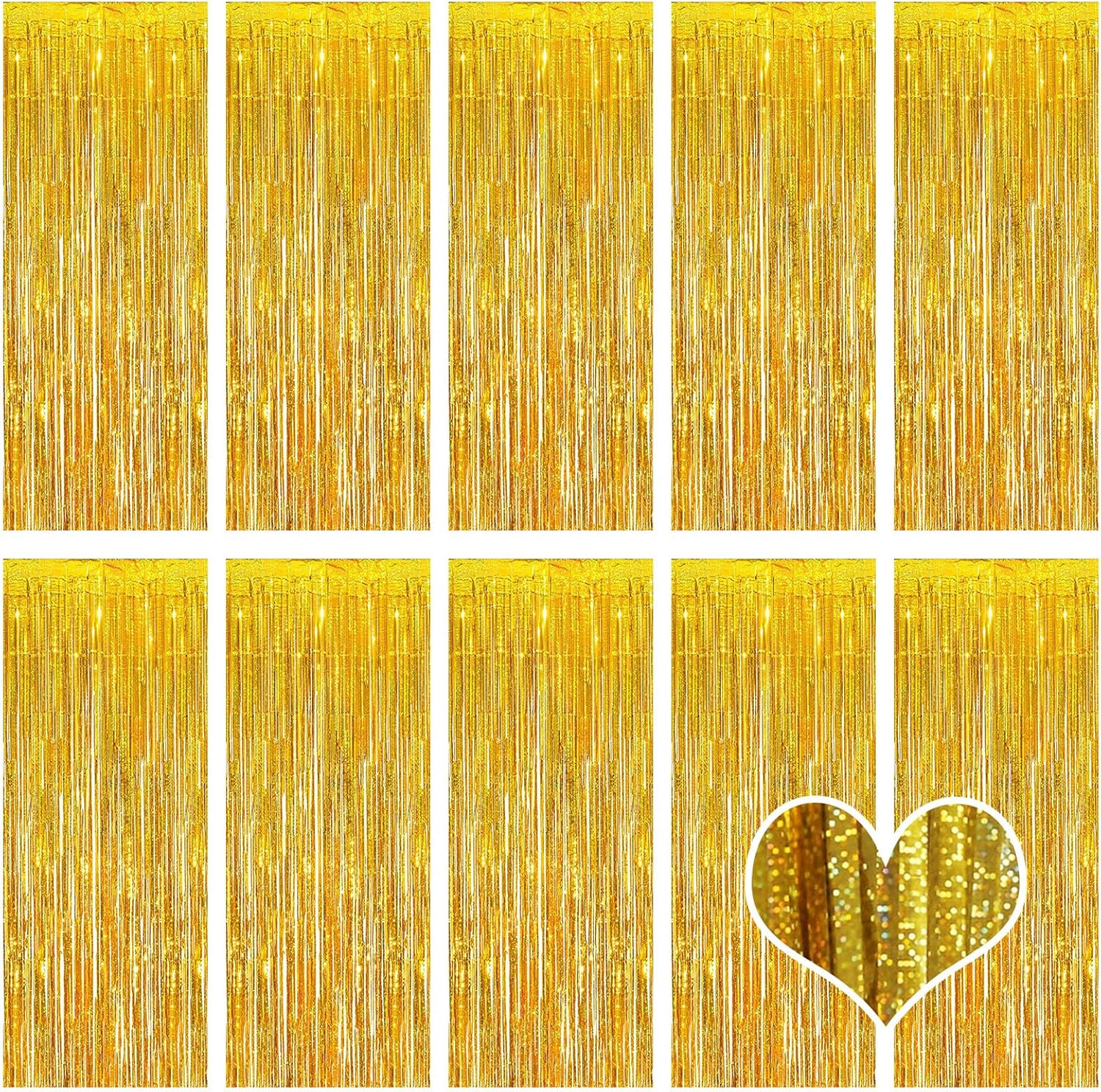 10 Pack Gold Backdrop Curtain 3.2ft x 8.2ft Metallic Tinsel Foil Fringe Curtains Photo Booth Background for Birthday Party Decoration Baby Shower Engagement Wedding Christmas Decoration (Gold)