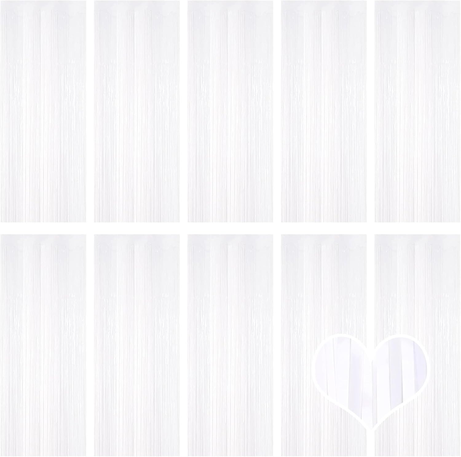 10 Pack White Backdrop Curtain 3.2ft x 8.2ft Metallic Tinsel Foil Fringe Curtains Photo Booth Background for Birthday Party Decoration Baby Shower Engagement Wedding Christmas Decoration (White)