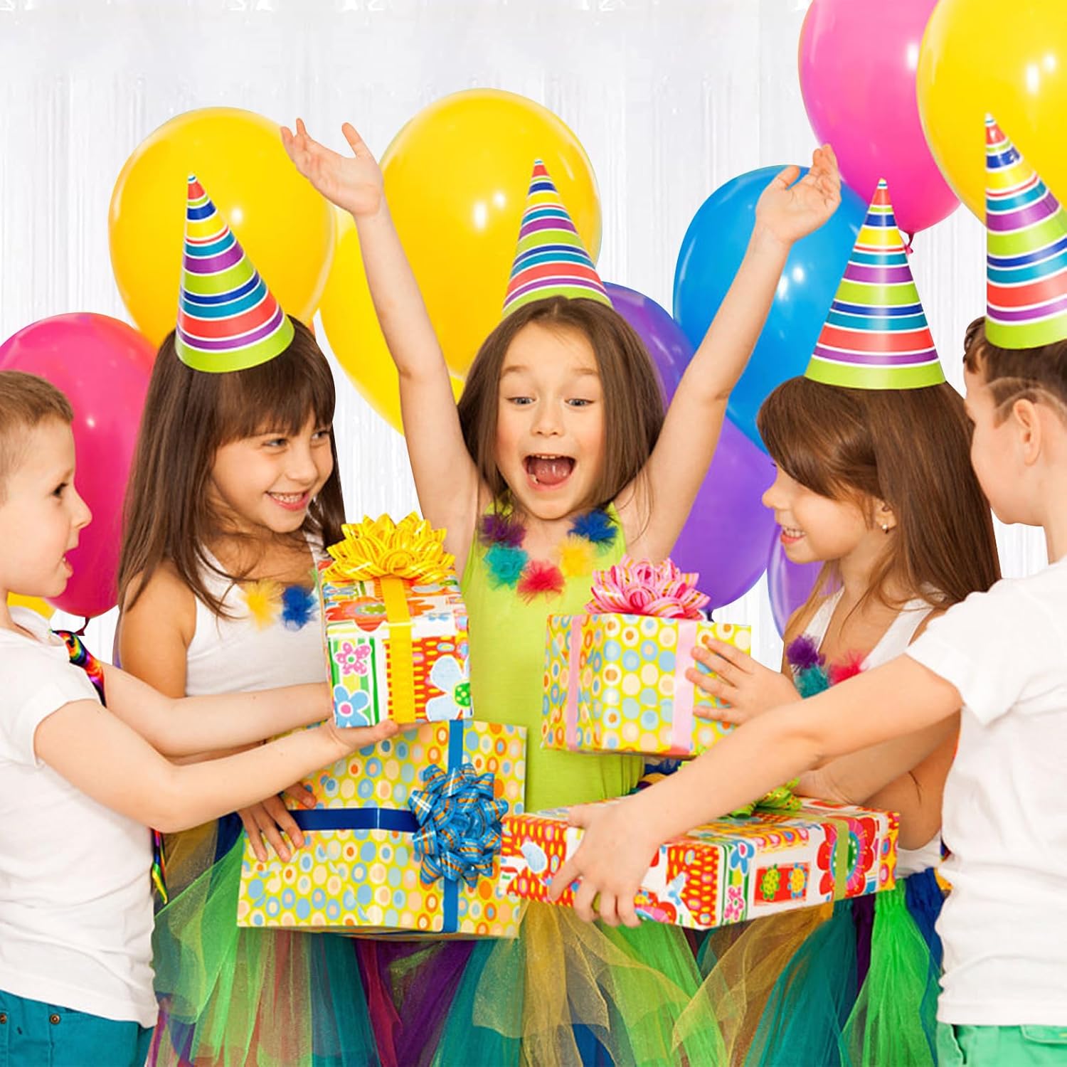 - {Size & Quantity}: Set of 10, each pack size is 3.2ft x 8.2ft (1m x 2.5m). The foil curtain is 8 feet long, the perfect length and size to cover a wide area, which is very suitable for indoors or outdoors to create a perfect background decoration.