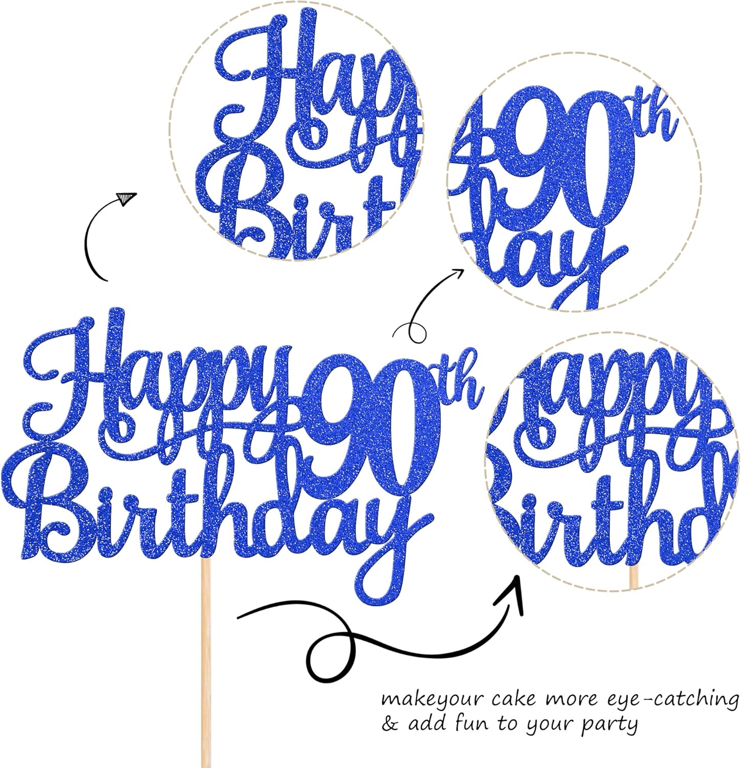 - Wide Usages ! The cake topper is perfect for happy 90th birthday theme party, cheers to 90 years birthday theme party cake decorations, they can make your cake more attractive and bring the fun to your party.You can also apply them for ice cream, fruits, cookies and other desserts.