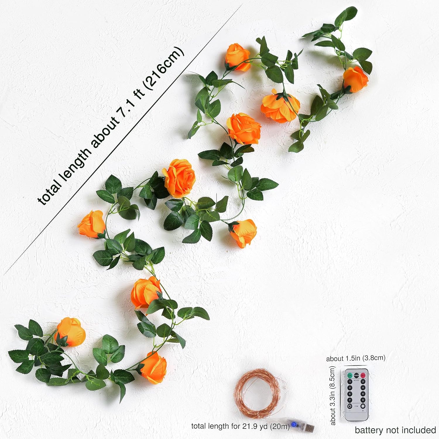 FiveSeasonStuff 29 Ft 4 Pack Mandarin Orange Rose Silk Flower Garland Artificial Flowers Decoration Hanging Floral with 66 feet String Lights