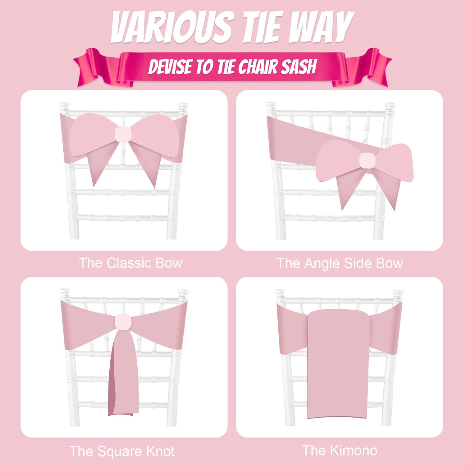 - Multicolor & Widely Use:The chair ribbon sashes have various color for you choose. And it can be tied into wedding chairs or folding chairs, draped across any decoration, or used as attractive table runners. These chair satin ties also can be used for party decor, decorating graduation, birthday, banquet, engagement and other events decoration