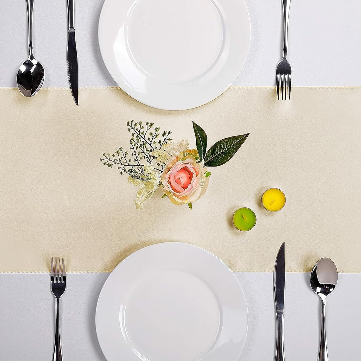 10-Pack Satin Table Runner Champagne 12 x 108 inches Long, Table Runners for Wedding, Birthday Parties, Banquets Decorations(10 Pack, 12x108 Inch, Champagne