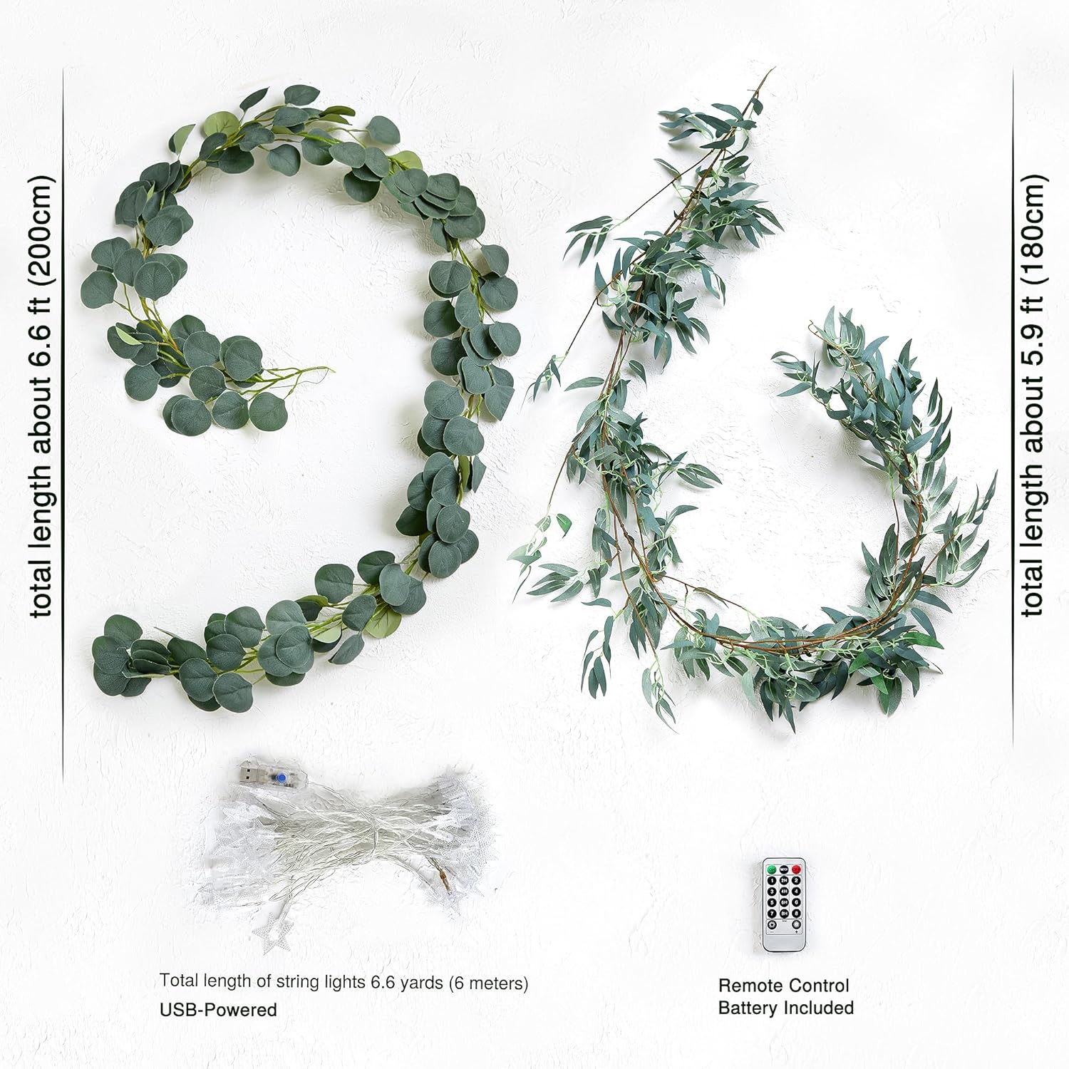 - Color : Willow and Eucalyptus Garlands With 33 Feet 80 Led Star String Lights (Battery)
