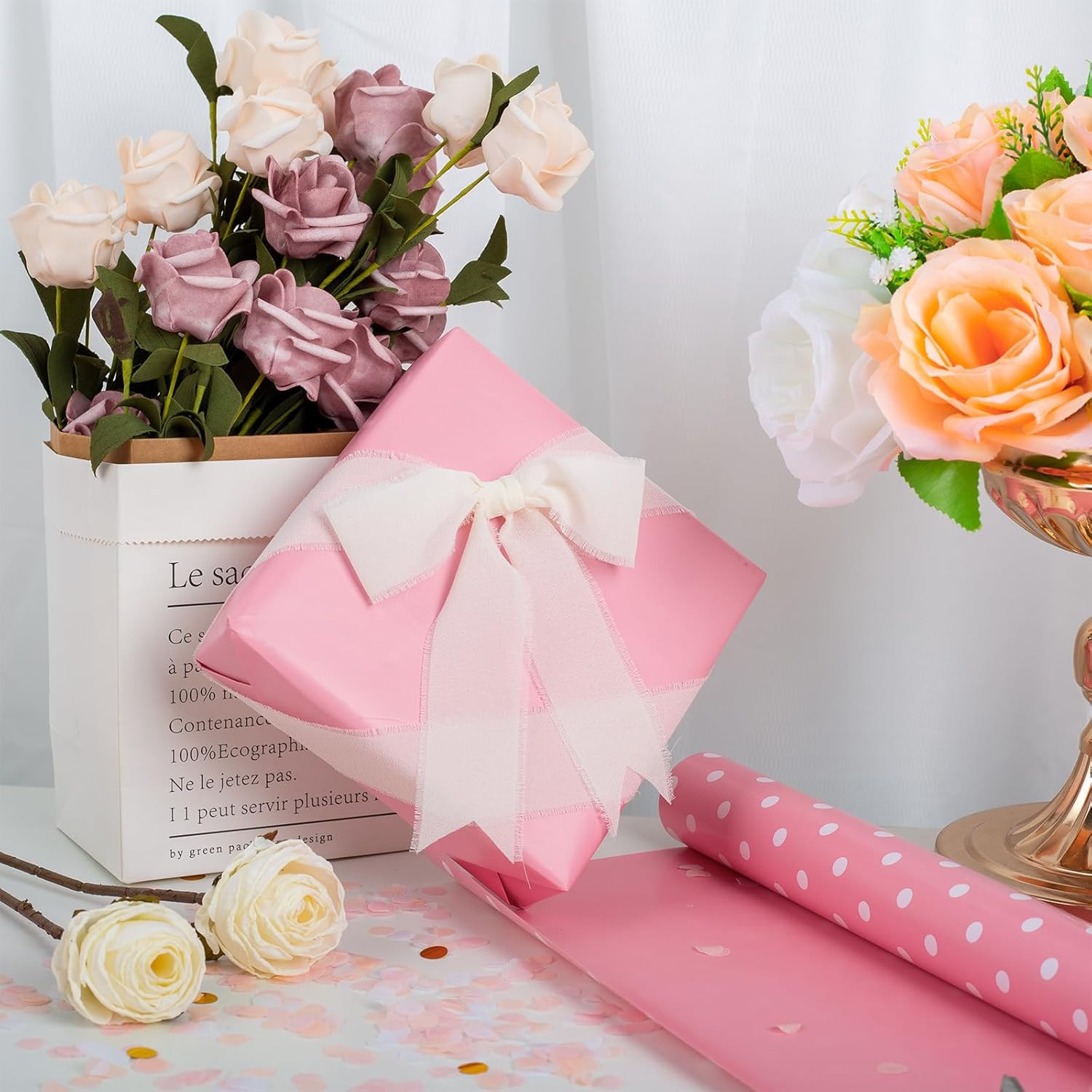 - Design: The Reversible Gift Wrap Paper with Polka Dot Design is so versatile. You can use colorful ribbon to make an eye catching gift