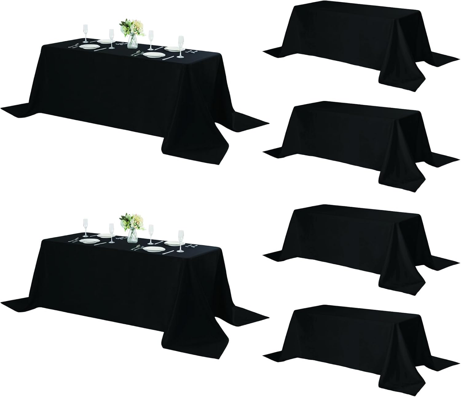 Fokitut 6 Pack Rectangle Tablecloth, 90x132 Inch, Stain Resistant and Wrinkle Polyester Table Cloth, Fabric Table Cover for Kitchen Dining, Wedding, Party, Holiday Dinner-Black