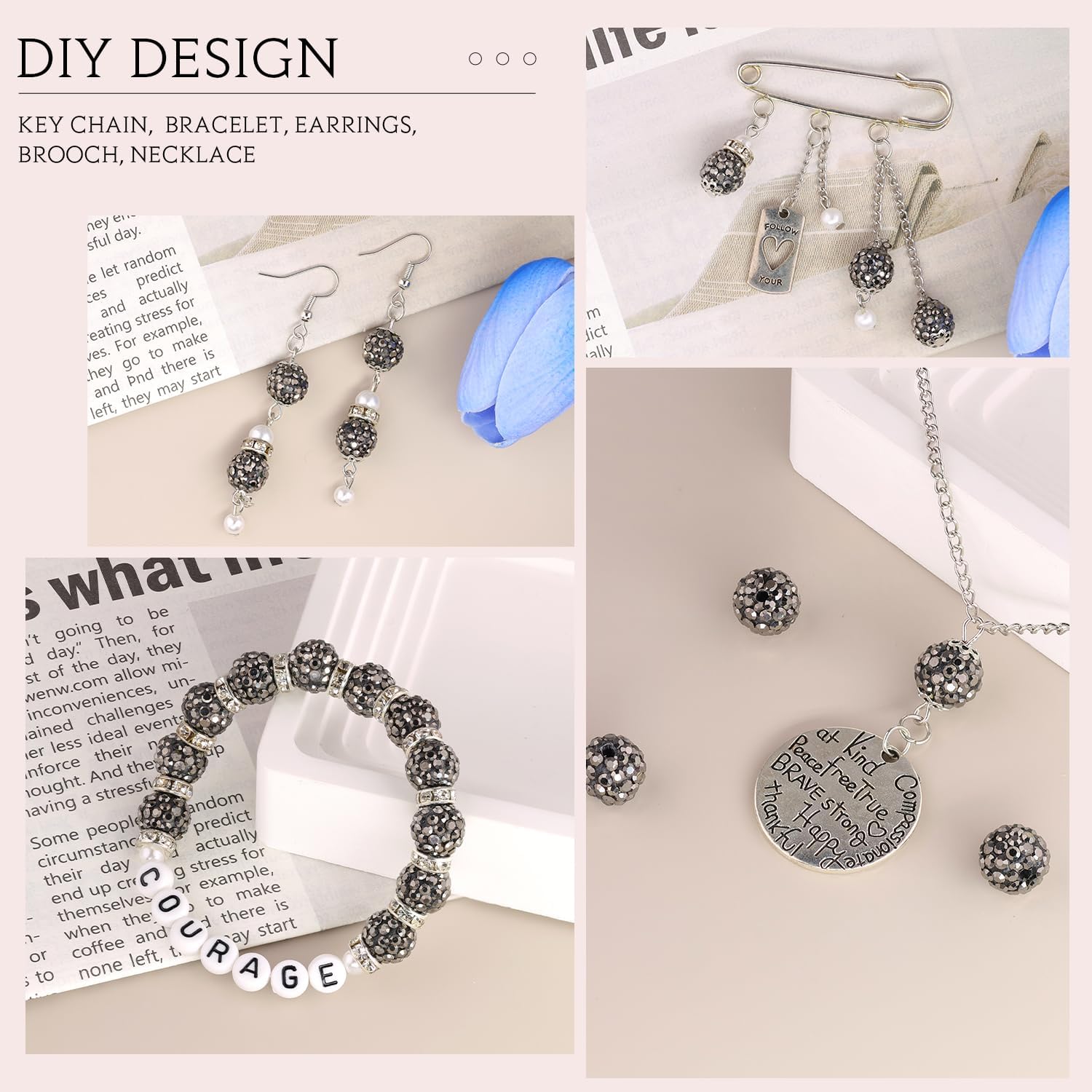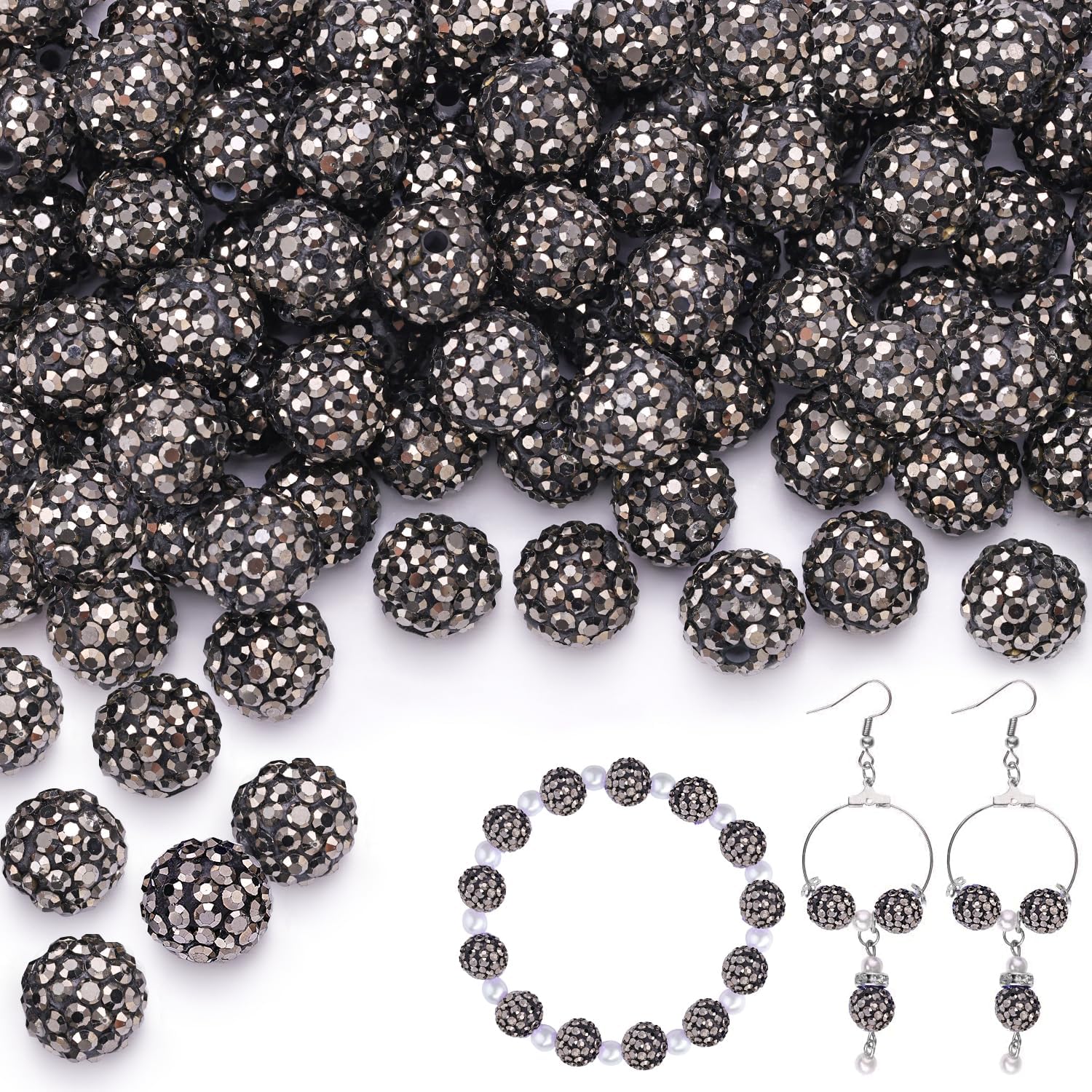 100 pcs 10mm Rhinestone Beads for Jewelry Making, Hematite Shiny Round Shamballa Disco Beads Bulk, Sparkle Crystal Clay Christmas for Bracelet Baseball Necklace Earring Crafting and DIY