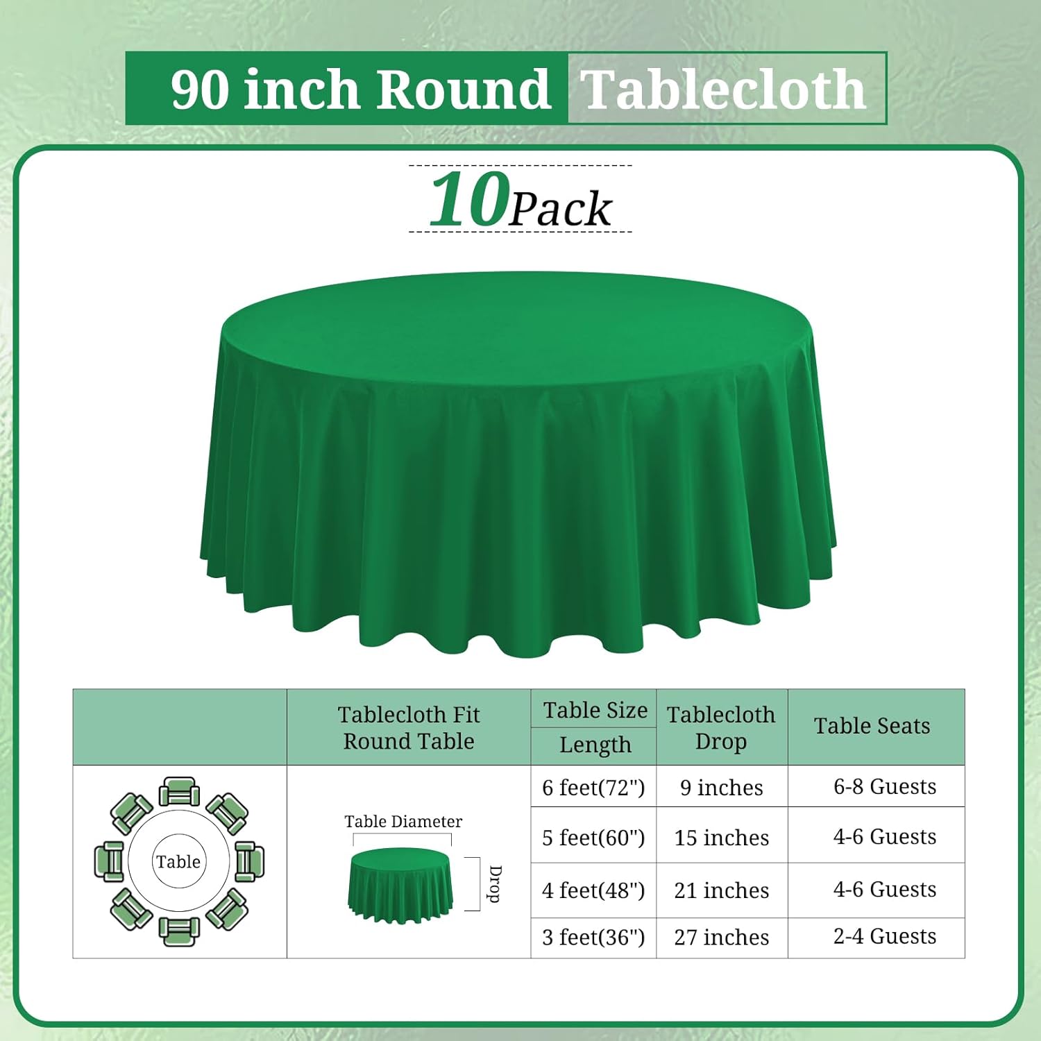 10 Pack Green Round Tablecloths - 90 Inch, Polyester Table Cover, Stain and Wrinkle Resistant Washable Fabric Table Cloth for Wedding Banquet Parties