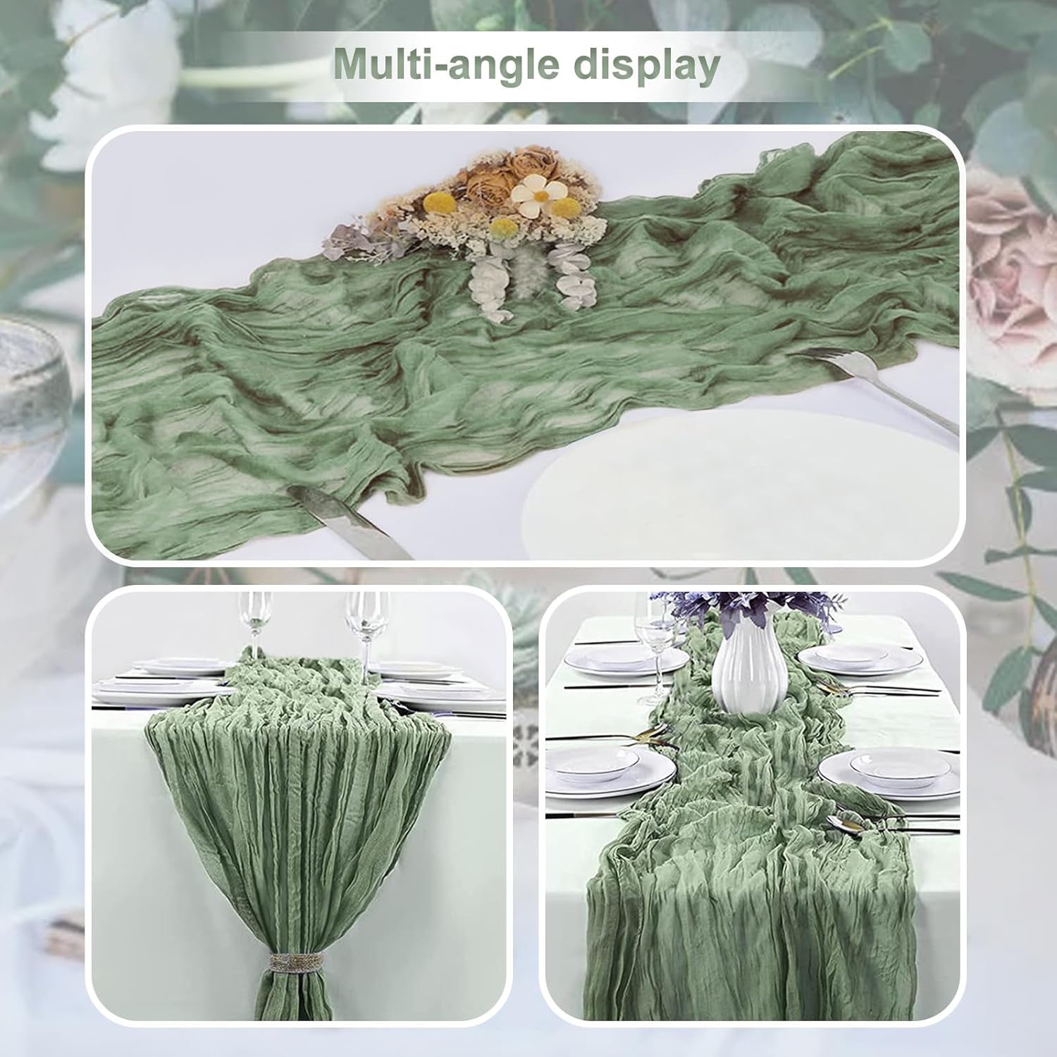 - User-Friendly: We understand the importance of convenience for our customers. Our sage green rustic sheer table runner is easy to clean and maintain. They can be machine washed or hand washed without losing their shape or color. The lightweight and flexible nature of the cheesecloth and gauze make them easy to handle and store, saving you space and effort.