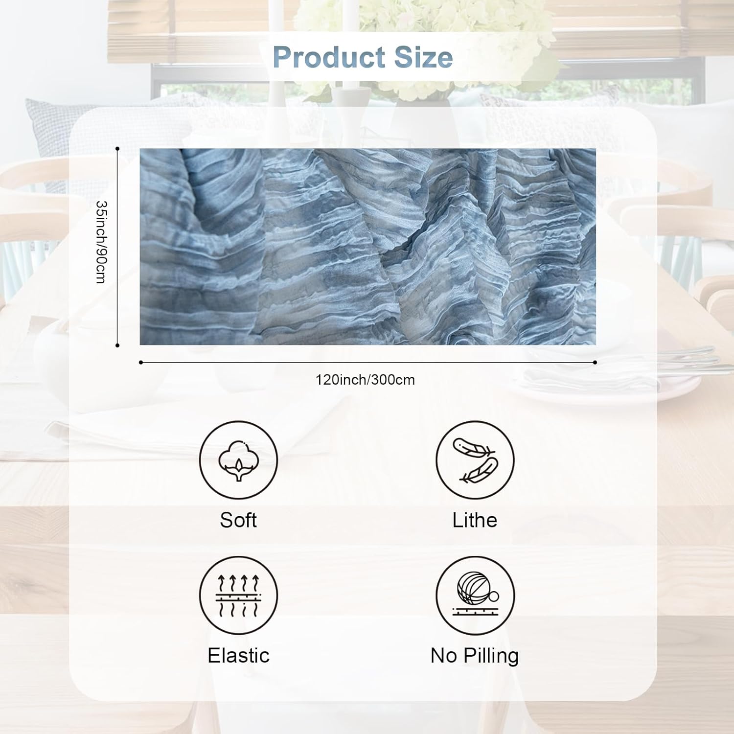 - Premium Materials: Our table runners are crafted from high-quality cheesecloth and gauze. The dusty blue cheesecloth table runner has good softness and breathability, while the gauze table runner offers a delicate and elegant texture. These materials are carefully selected to ensure durability and a luxurious feel, making your table look and feel extraordinary.
