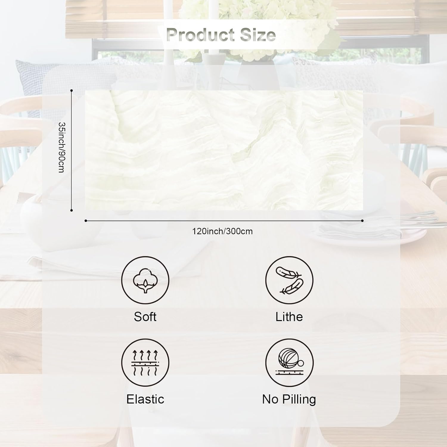 - Suitable Occasions: Whether it's a comfortable family dinner, decorations for bridal shower, baby shower, or garden party, our cheese cloth table runner is perfect decoration for every occasion. They add a touch of charm and sophistication to any table setting, creating a welcoming and inviting atmosphere.