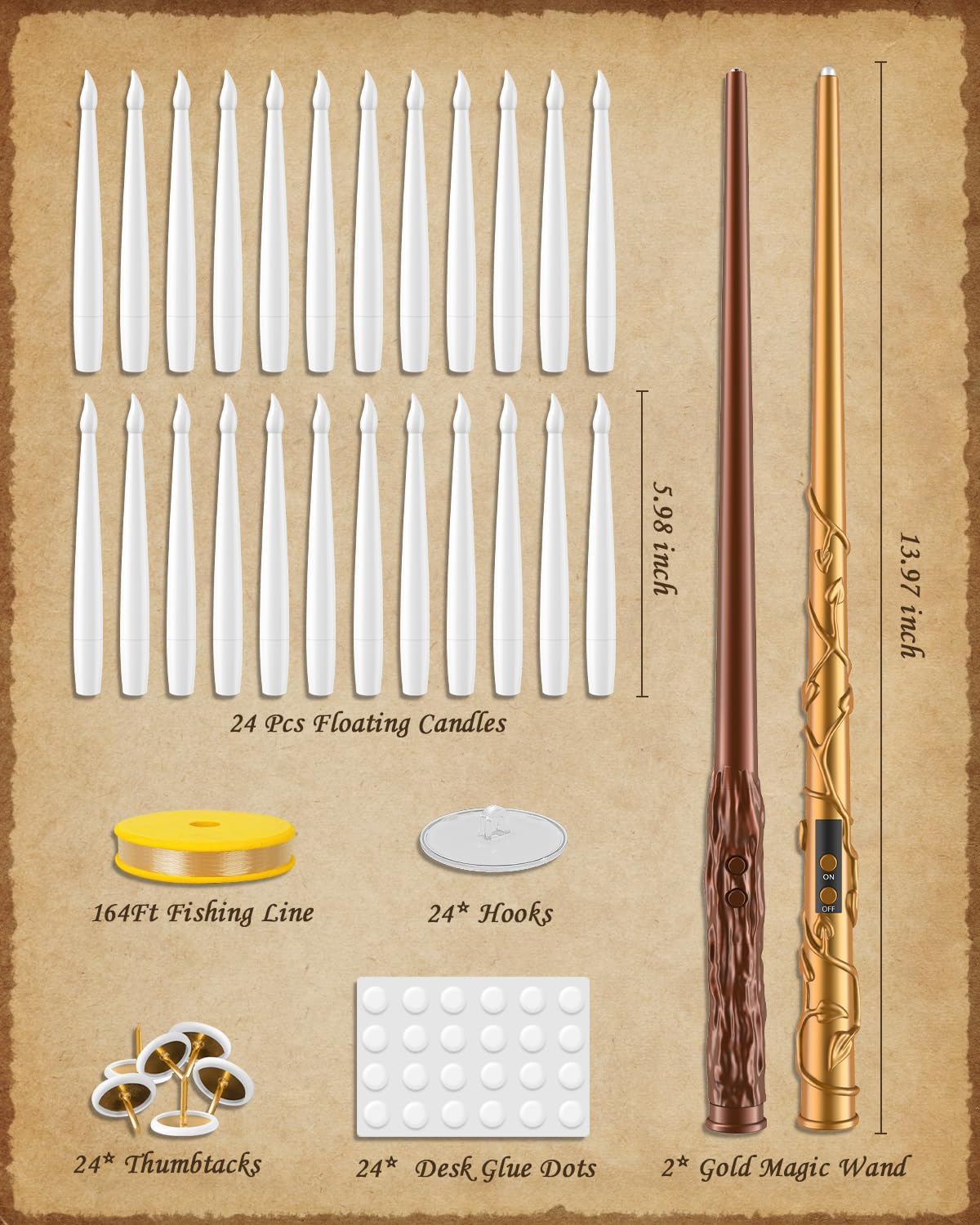 - ๐ด๐๐๐๐ ๐ฎ๐๐๐๐ ๐๐๐ ๐ท๐๐๐๐๐๐๐๐๐ : Wrapped in a delightful gift box, these flameless candles come with a magical wand remote and are a thrilling surprise for kids! Perfect Halloween, Christmas, Easter, birthday, wedding, magical-themed parties, or any celebration gifts for kids and adults. Let the hanging candles, controlled by the mystical wand, ignite their imagination and transport them to a realm where magic comes alive!
