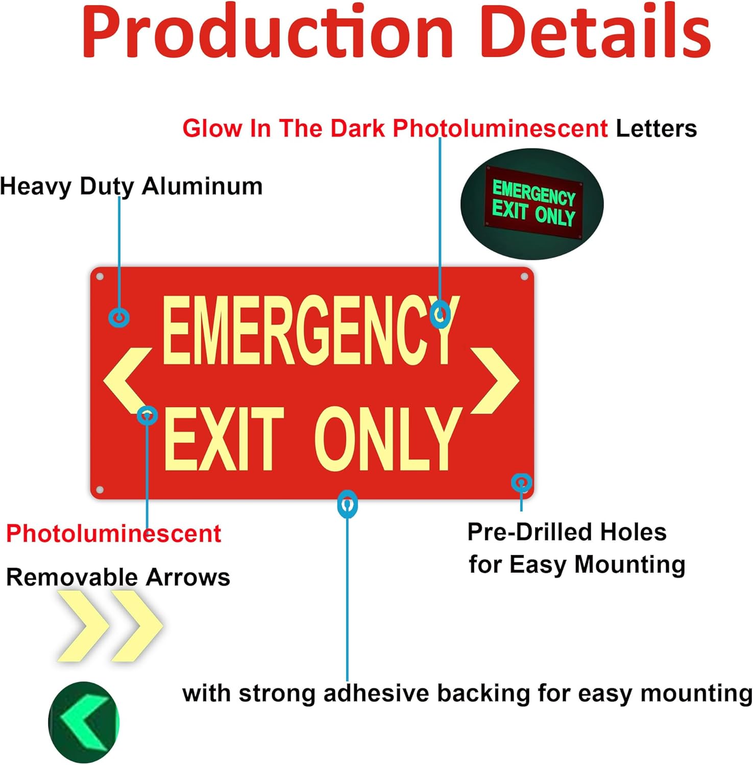 - Customizable Arrows: ---- Includes removable arrows that can be positioned to indicate the desired exit direction.