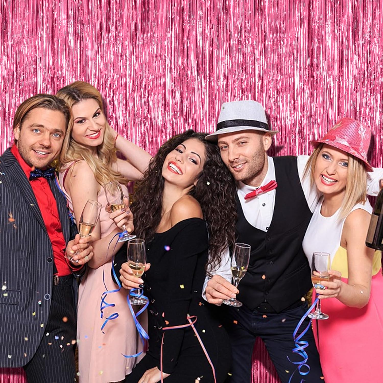 10 Pack Foil Curtain Backdrop Pink Metallic Tinsel Foil Fringe Curtains Photo Booth Props for Birthday Wedding Engagement Baby Shower Bachelorette Christmas Holiday Celebration Party