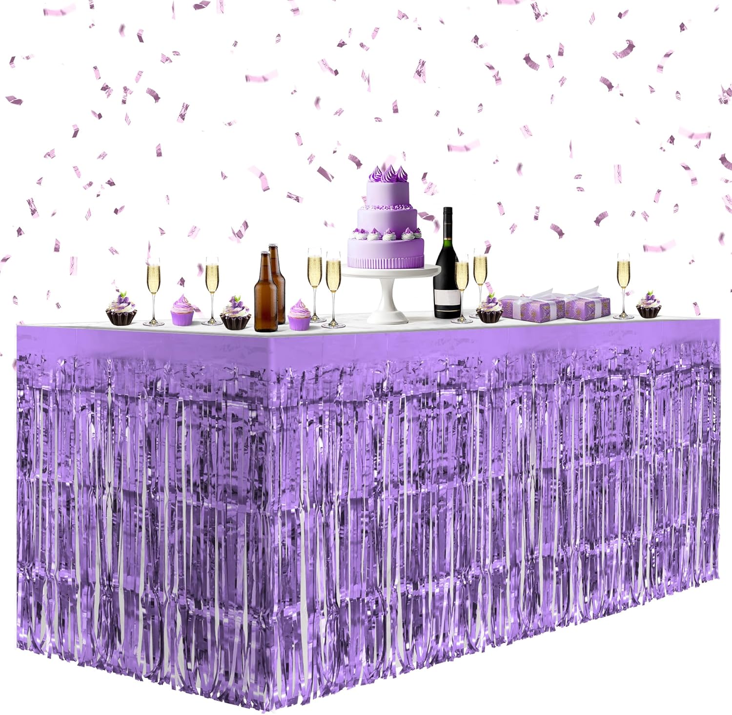 1 Pack Light Purple Table Skirts, 29x108" Metallic Foil Tinsel Fringe Table Skirts for Rectangle Tables Streamer Curtains Backdrop, Party Decorations for Birthdays Weddings Holidays