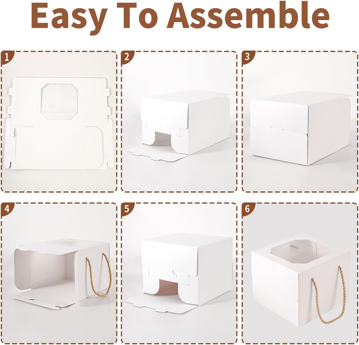 - Package includes :30 pcs white 6x6x5 cake box, 6 inch cake box.