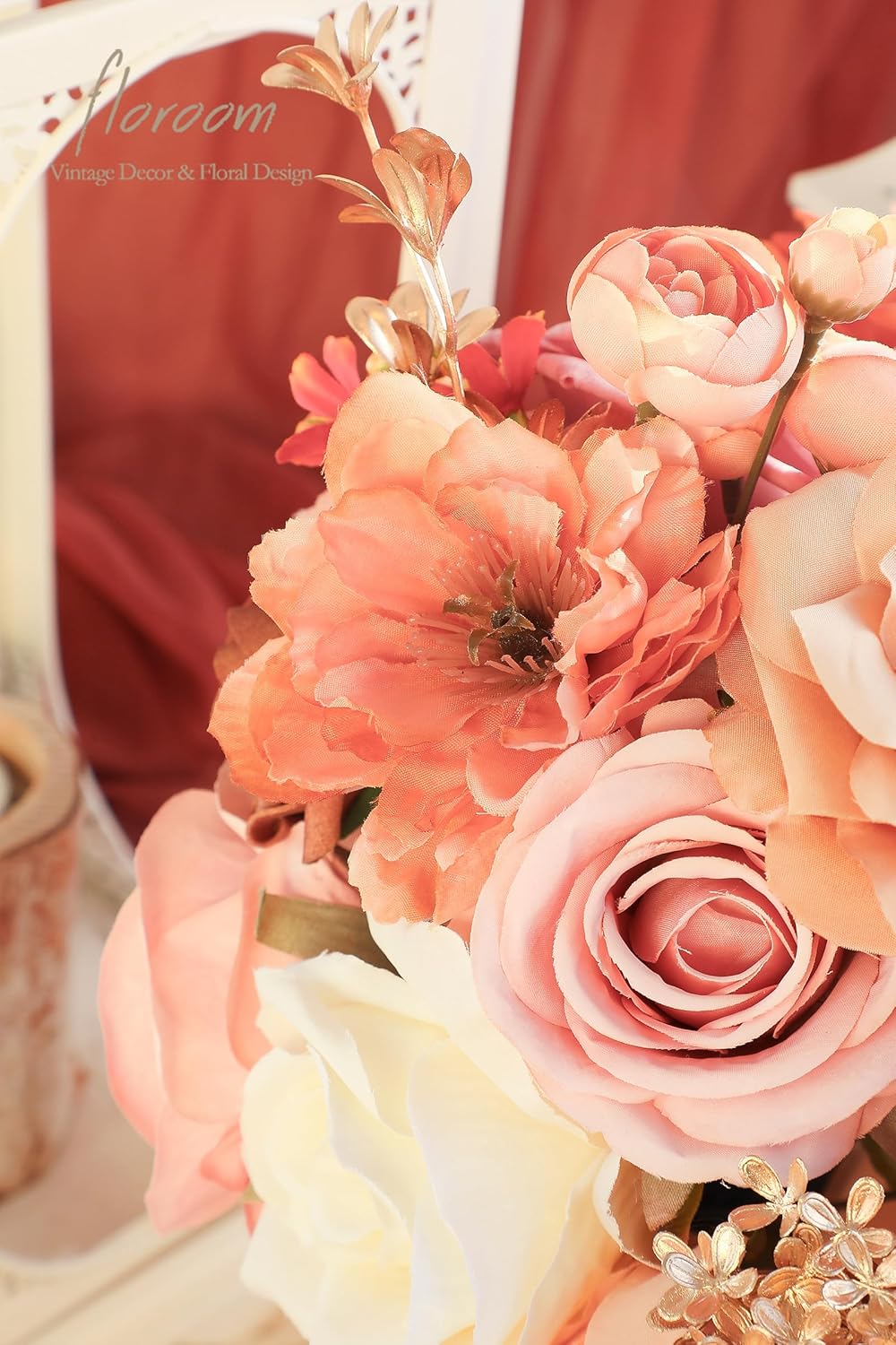 - ❤️ Package Details: Includes faux silk flowers with terracotta dahlias, dusty rose and apricot roses; foam flowers feature dusty rose, cream, and ivory roses. Also contains ranunculus and golden olive branches as accessories.