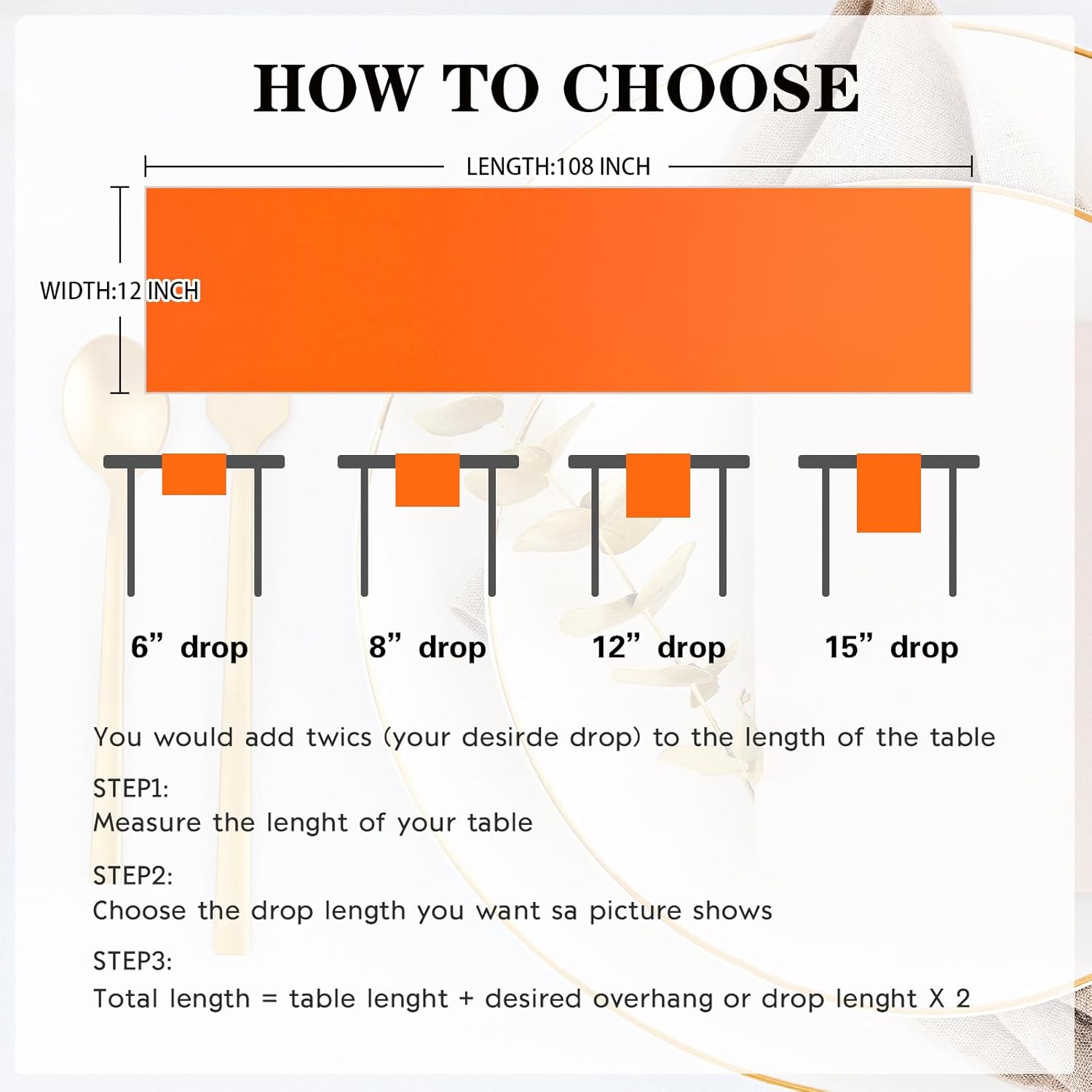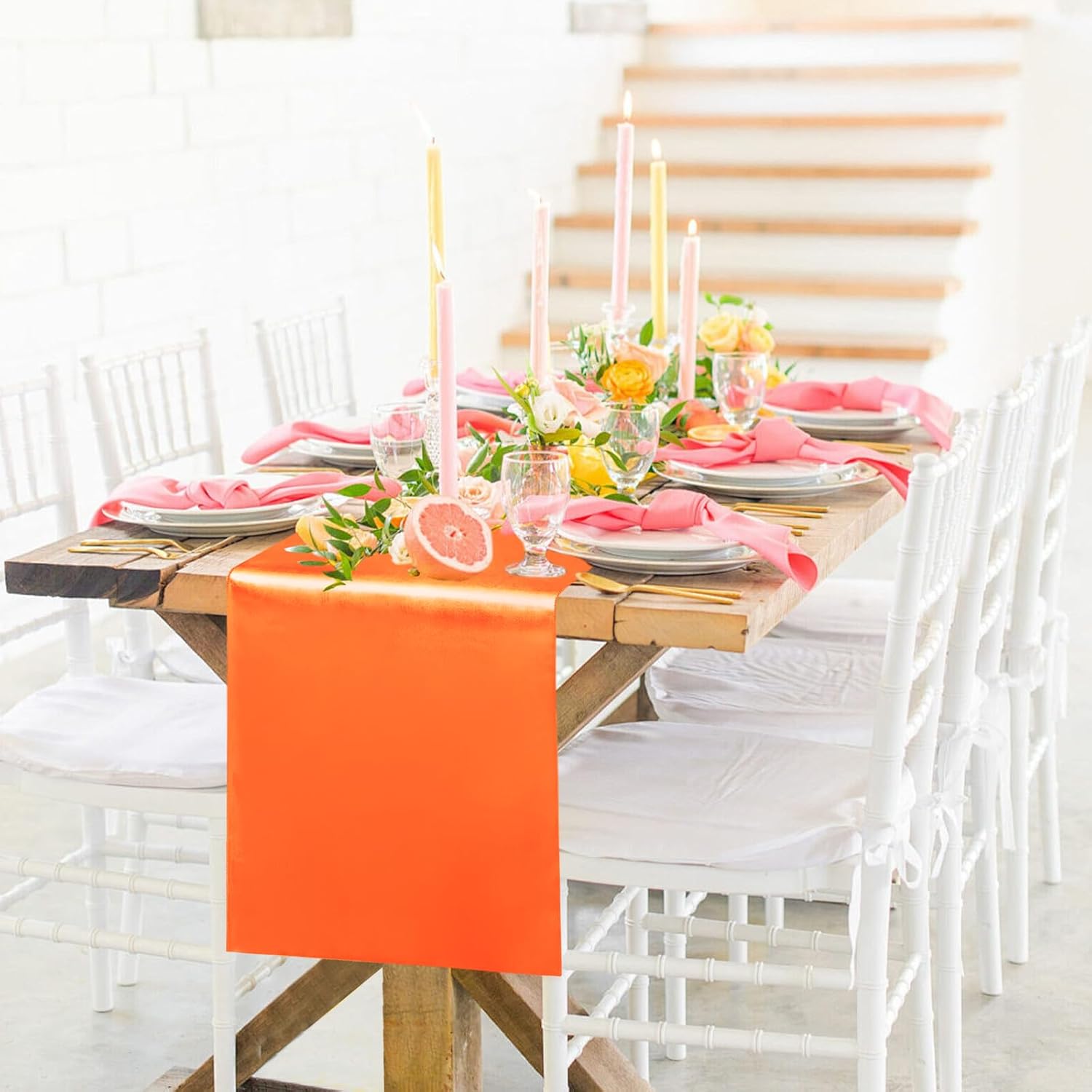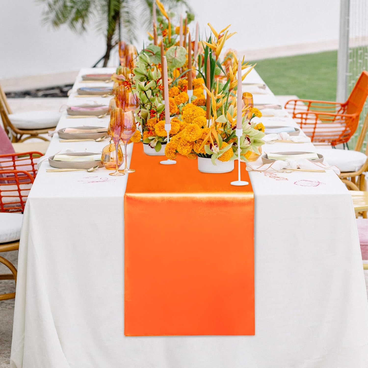 - Package Include: Each orange satin table runner measures 12" x 108", total 10 packs, which is appropriate for rectangle or round tables that can seat 8-10 people.