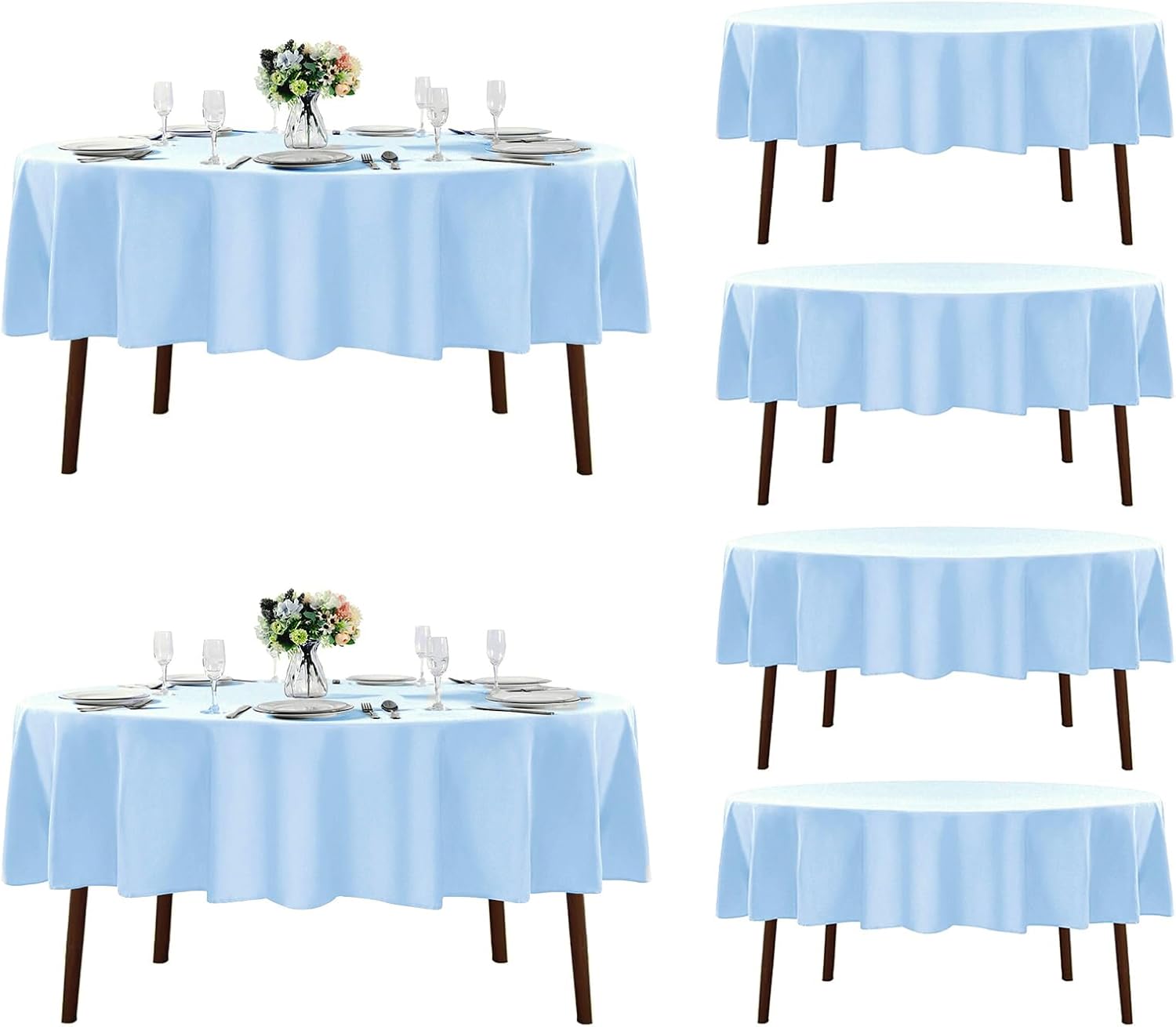 Fokitut 6 Pack Round Tablecloth, 70 Inch, Stain Resistant and Wrinkle Polyester Table Cloth, Fabric Table Cover for Kitchen Dining, Wedding, Party, Holiday Dinner-Blue Mist