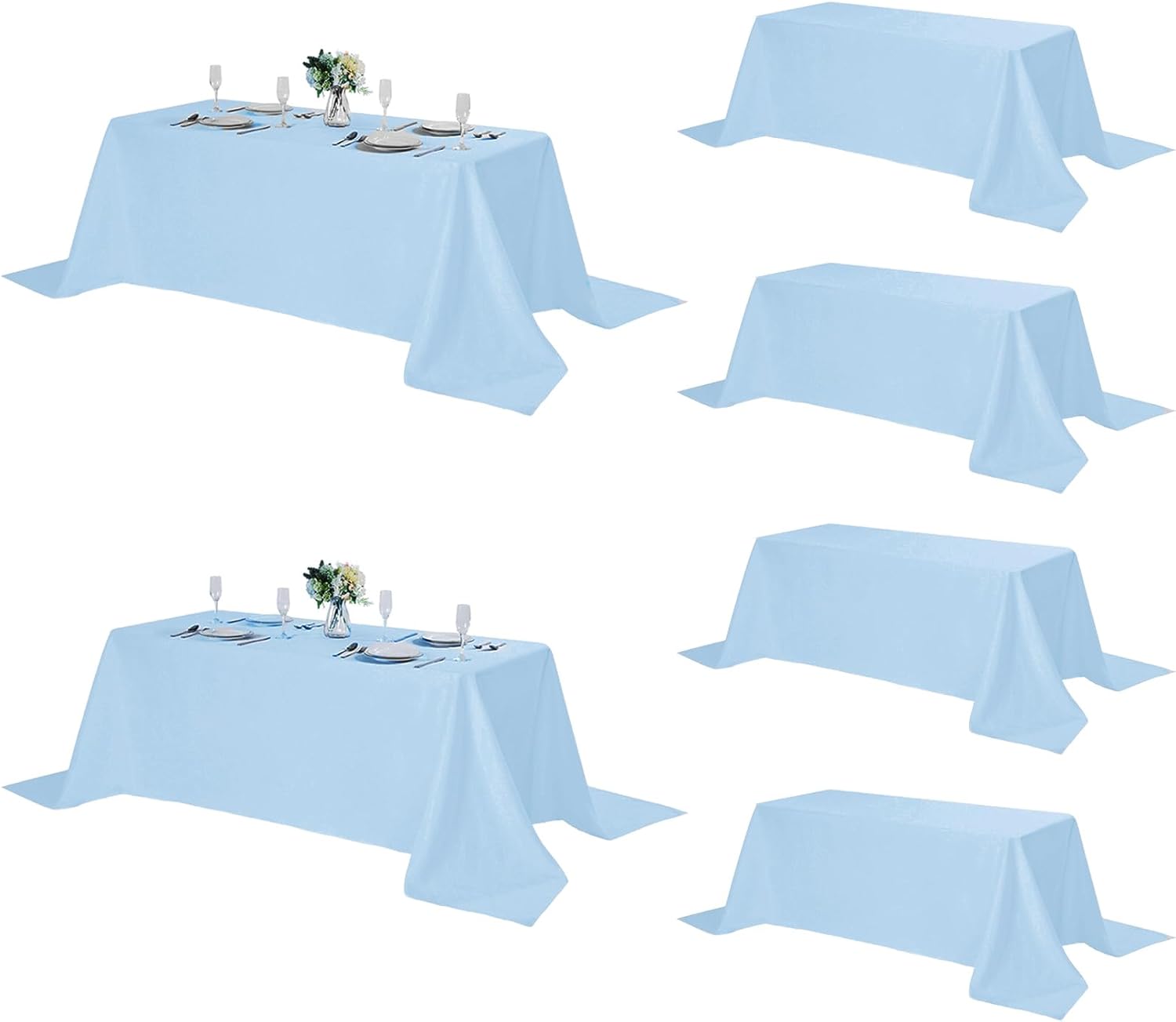 - Measurement: Available in following sizes: Rectangular: 60"*102", 60"*120", 90"*132", 90"*156". Round: 70ββ, 90ββ, 108ββ, 120ββ, 132ββ. Please measure the size of your table before purchasing. Each pack include 6 pcs of tablecloth.