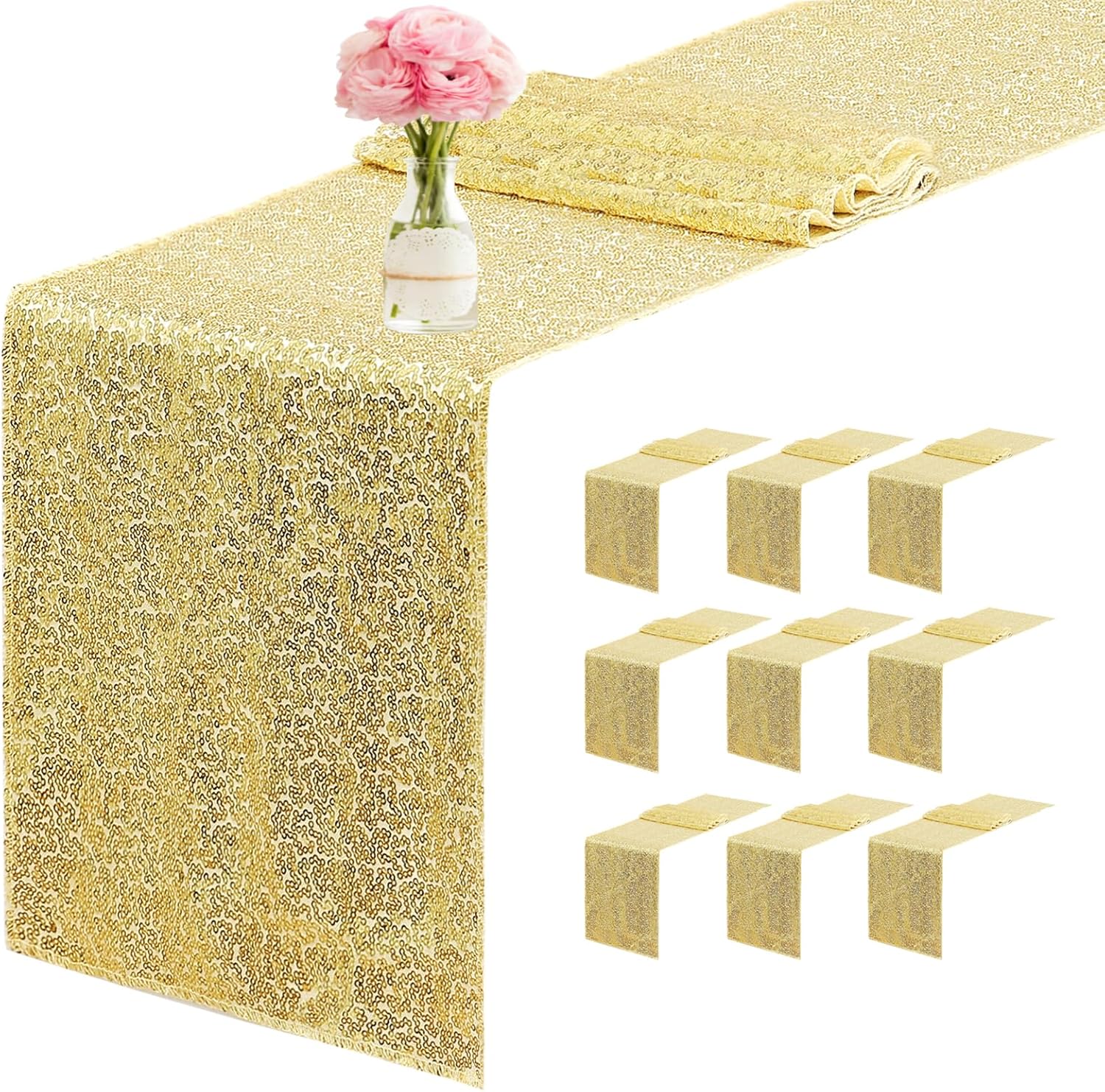 10 Packs 12 x 72 inches Sequin Table Runner, Gold Glitter Table Runner for Birthday Party Supplies Wedding Engagement Baby Shower Holiday Celebration Event Decorations