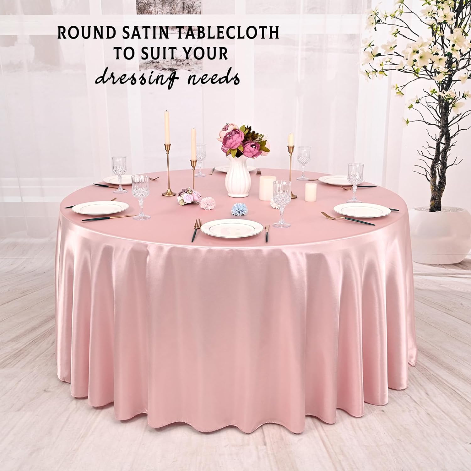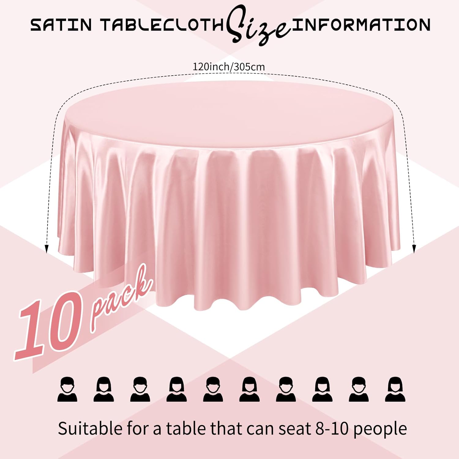 10 Packs Satin Tablecloth 120 Inch Rose Gold Round Table Cloth Silk Tablecloth Smooth Fabric Overlay Satin Table Cover Decoration for Wedding Party Banquet Events