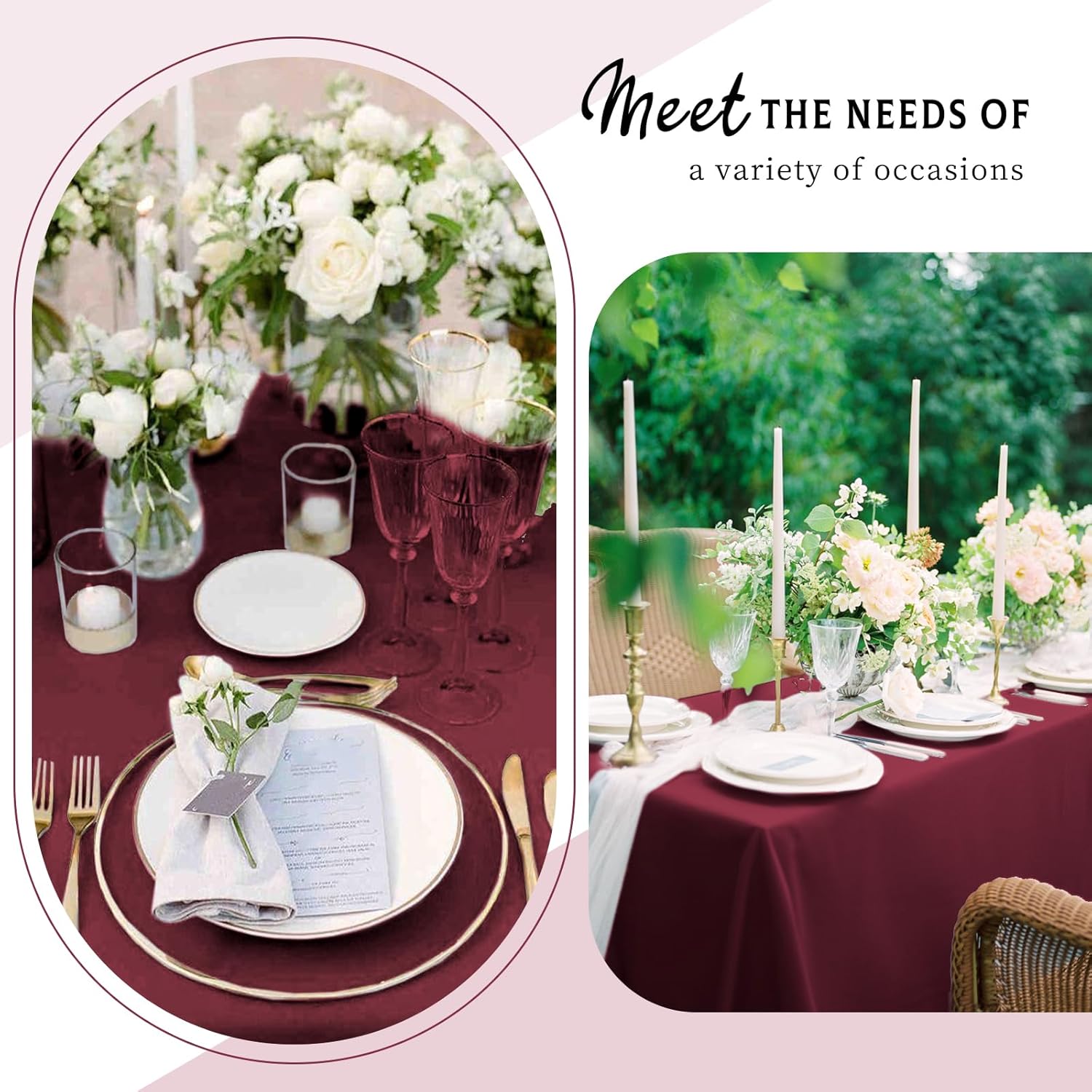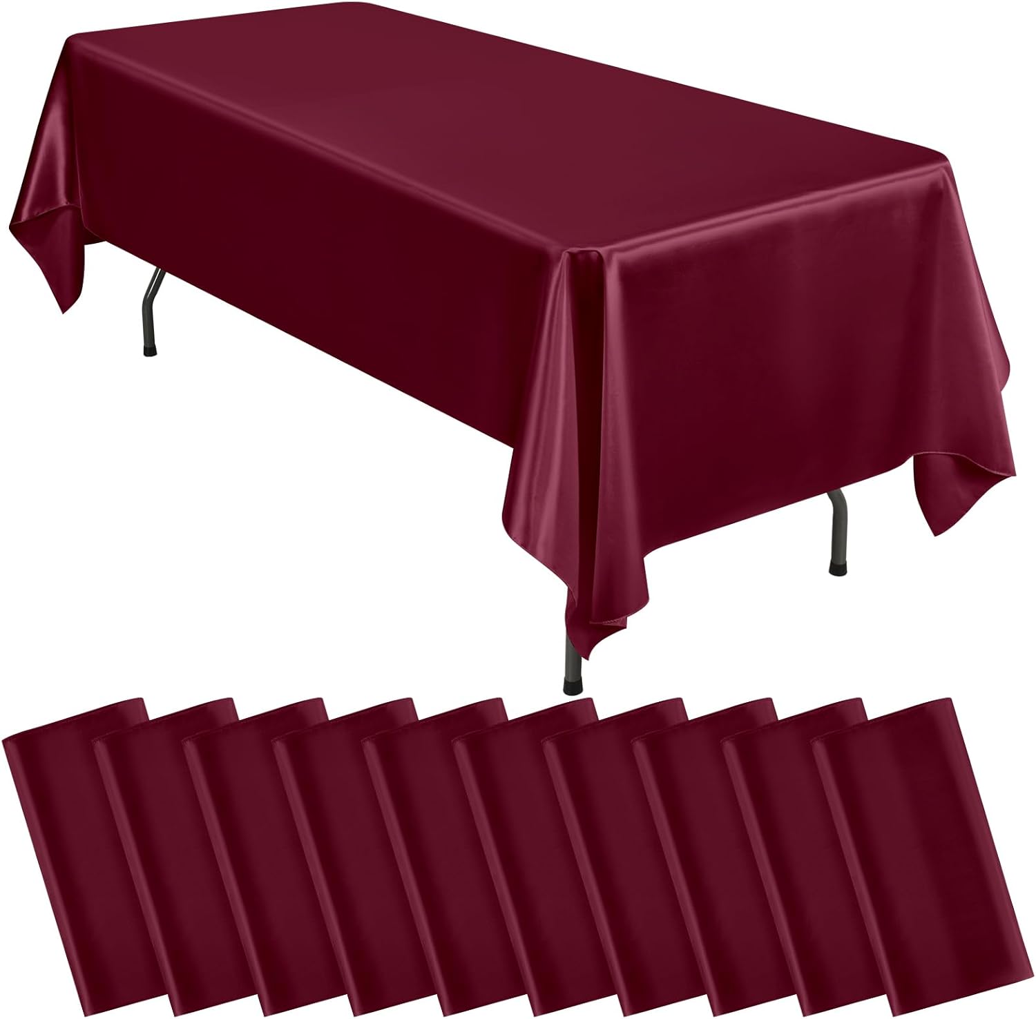 - Package List: You will get 10 packs burgundy satin tablecloth.The size of satin table covers are 57x108 inch/145x275 cm, which is large enough to decorate a table that can accommodate 10-12 persons.The tablecloth size is usually larger than your table size. Please measure your table size before buying.