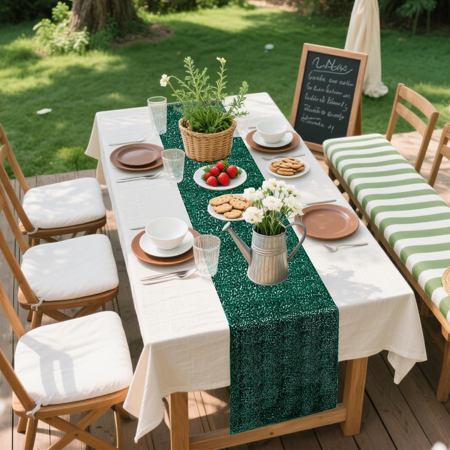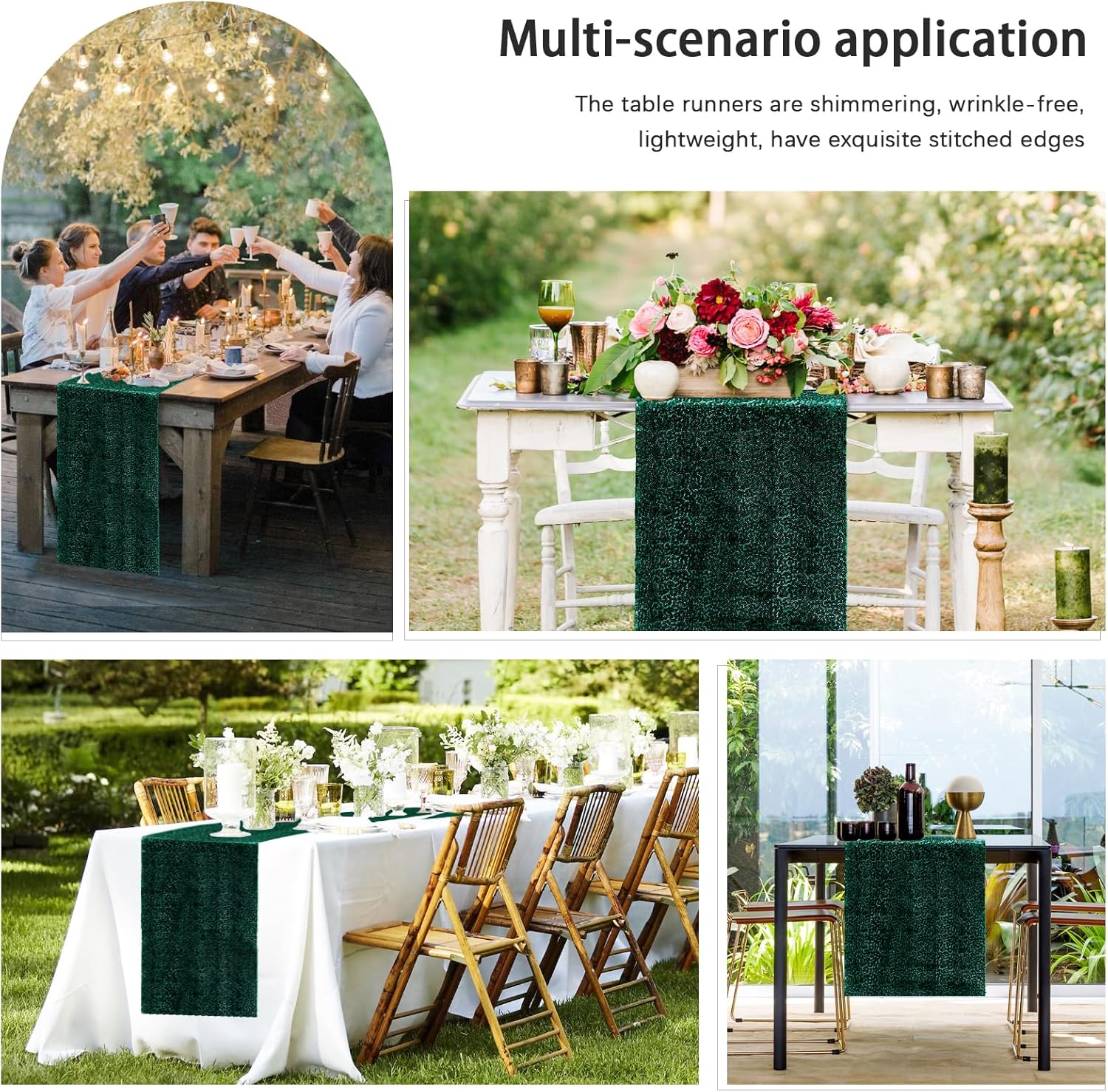 10 Packs 12 x 72 inches Sequin Table Runner, Hunter Green Glitter Table Runner for Birthday Party Supplies Wedding Engagement Baby Shower Holiday Celebration Event Decorations
