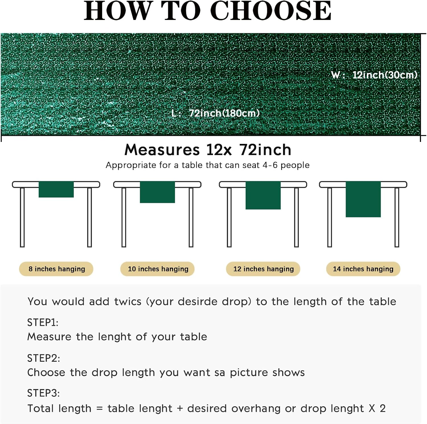 - Package Include: Each sequin table runner measures 12" x 72", total 10 pieces, perfect for a table that seat 4-6 people. The sequin table runner is appropriate for rectangle or round tables.